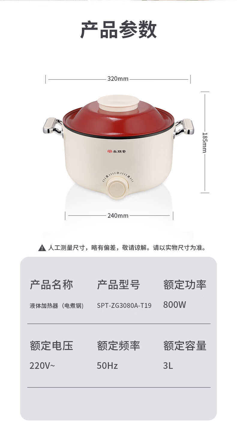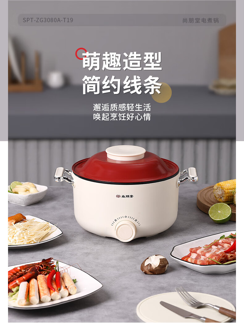 尚朋堂 电煮锅多功能宿舍学生煮面火锅煲粥多用锅 3L SPT-ZG3080A-T19 电煮锅 精美彩盒装
