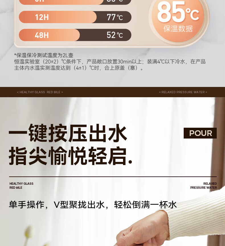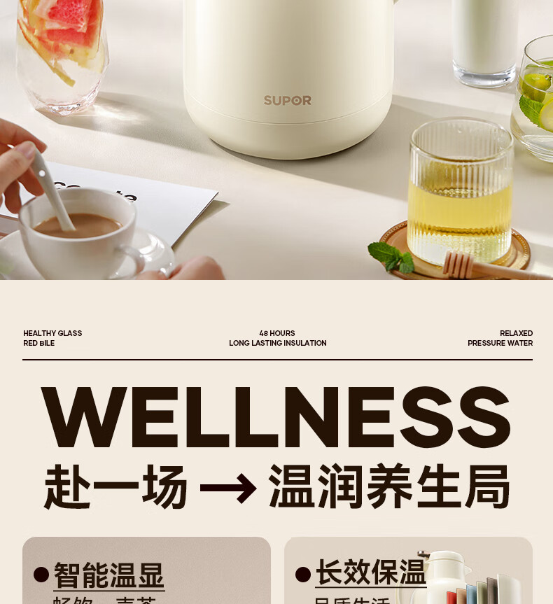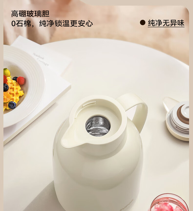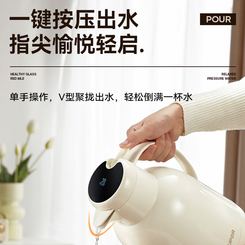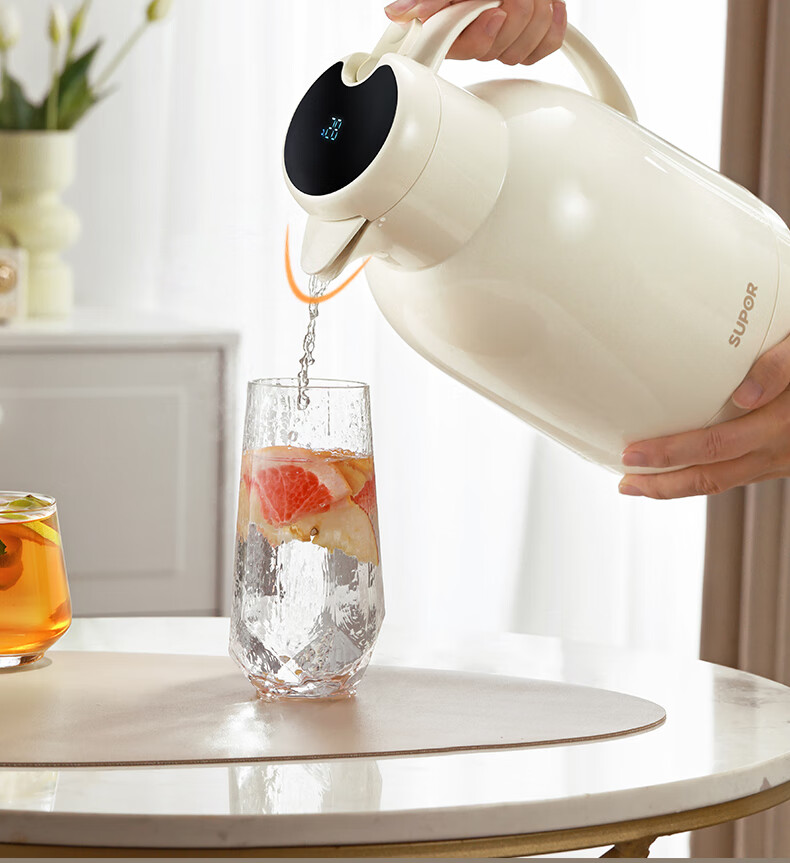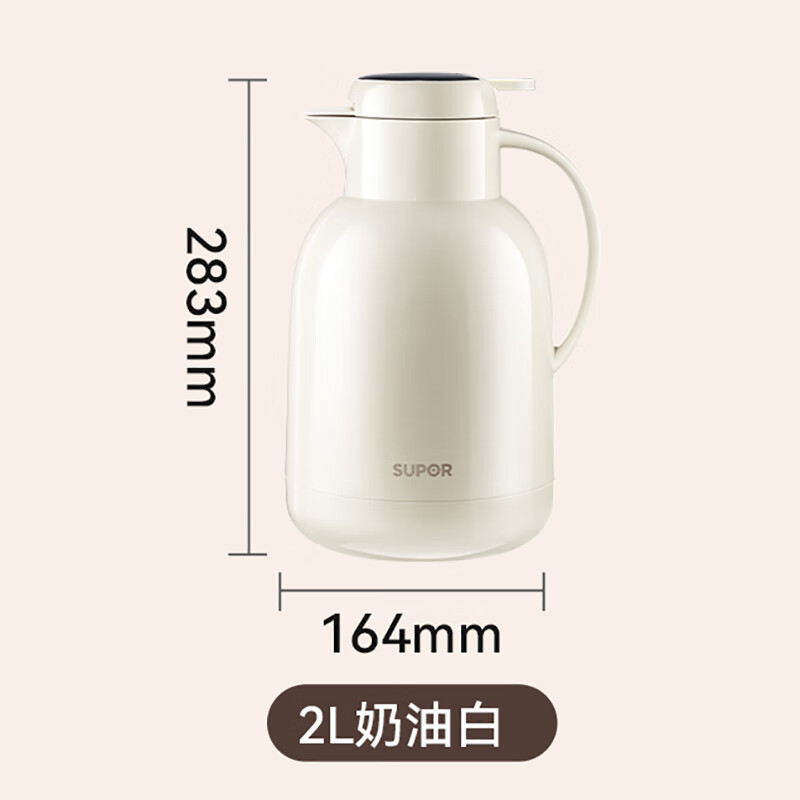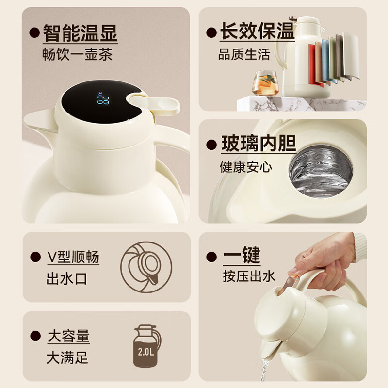 苏泊尔 SUPOR 智能温显保温壶 玻璃内胆 2L 奶油白 KCG20CA50