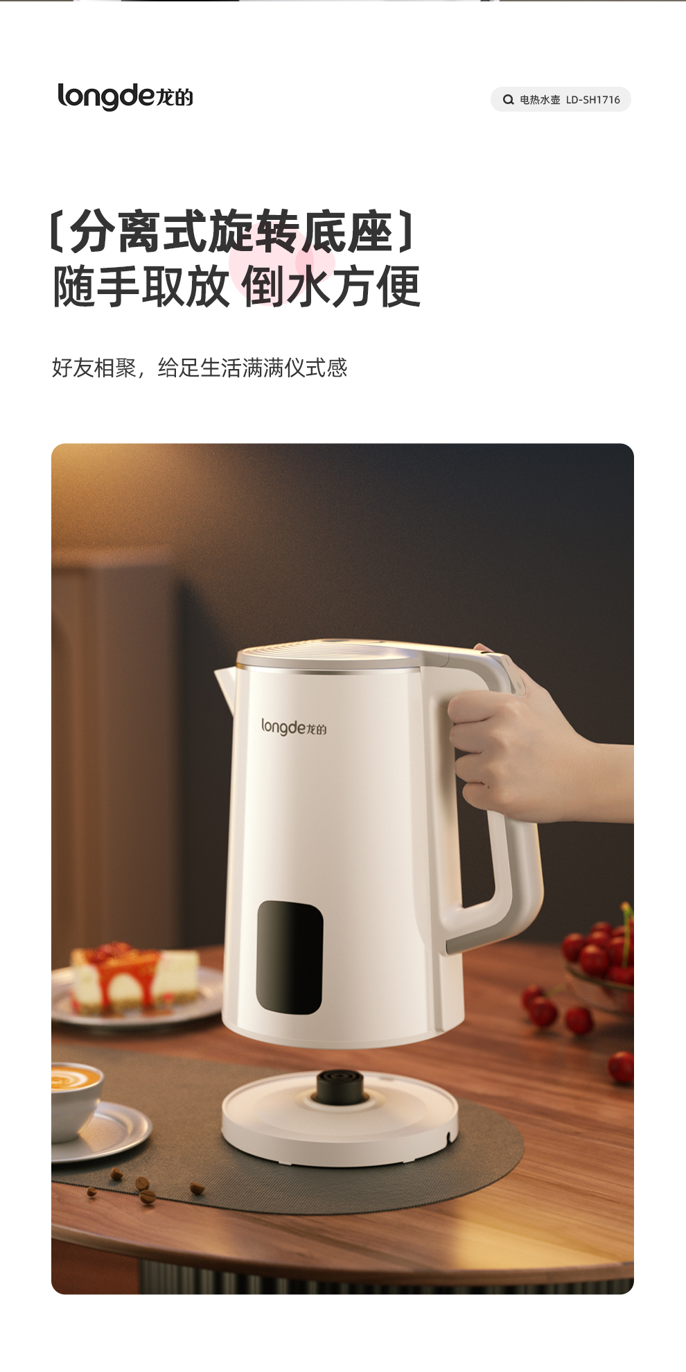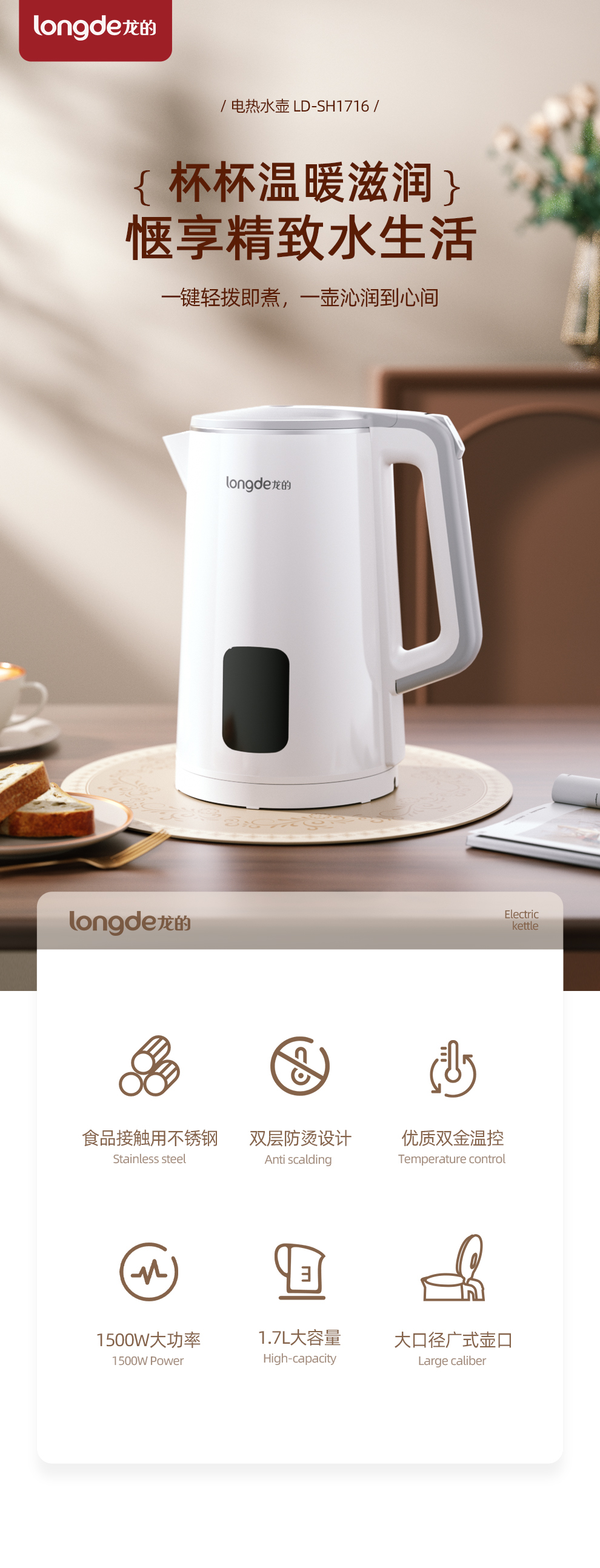 龙的电热水壶家用烧水壶1500W快速加热煮水壶 1.7L LD-SH1716