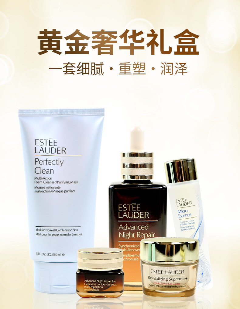 雅诗兰黛明星修护五件套 蓝洁面150ml+原生液200ml+小棕瓶100ml+智妍霜75ml+小棕瓶眼霜15ml