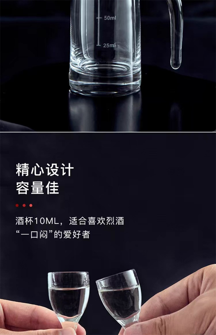 1950白酒杯套装加厚水晶分酒器一口杯高脚玻璃小酒杯带把分酒壶 6+6礼盒套装