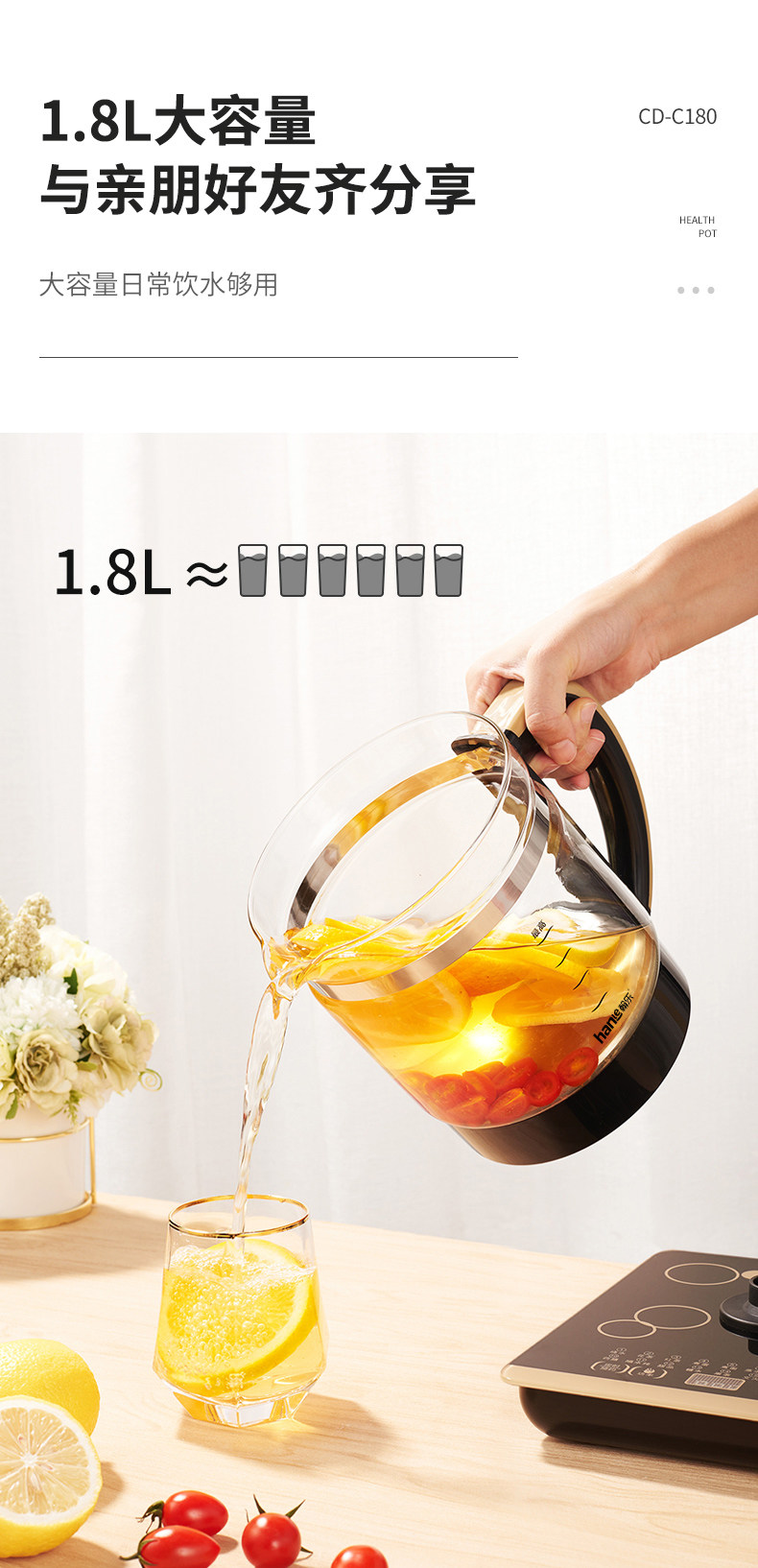 翰乐CD-C180养生壶电烧水壶花茶壶1.8L/800W