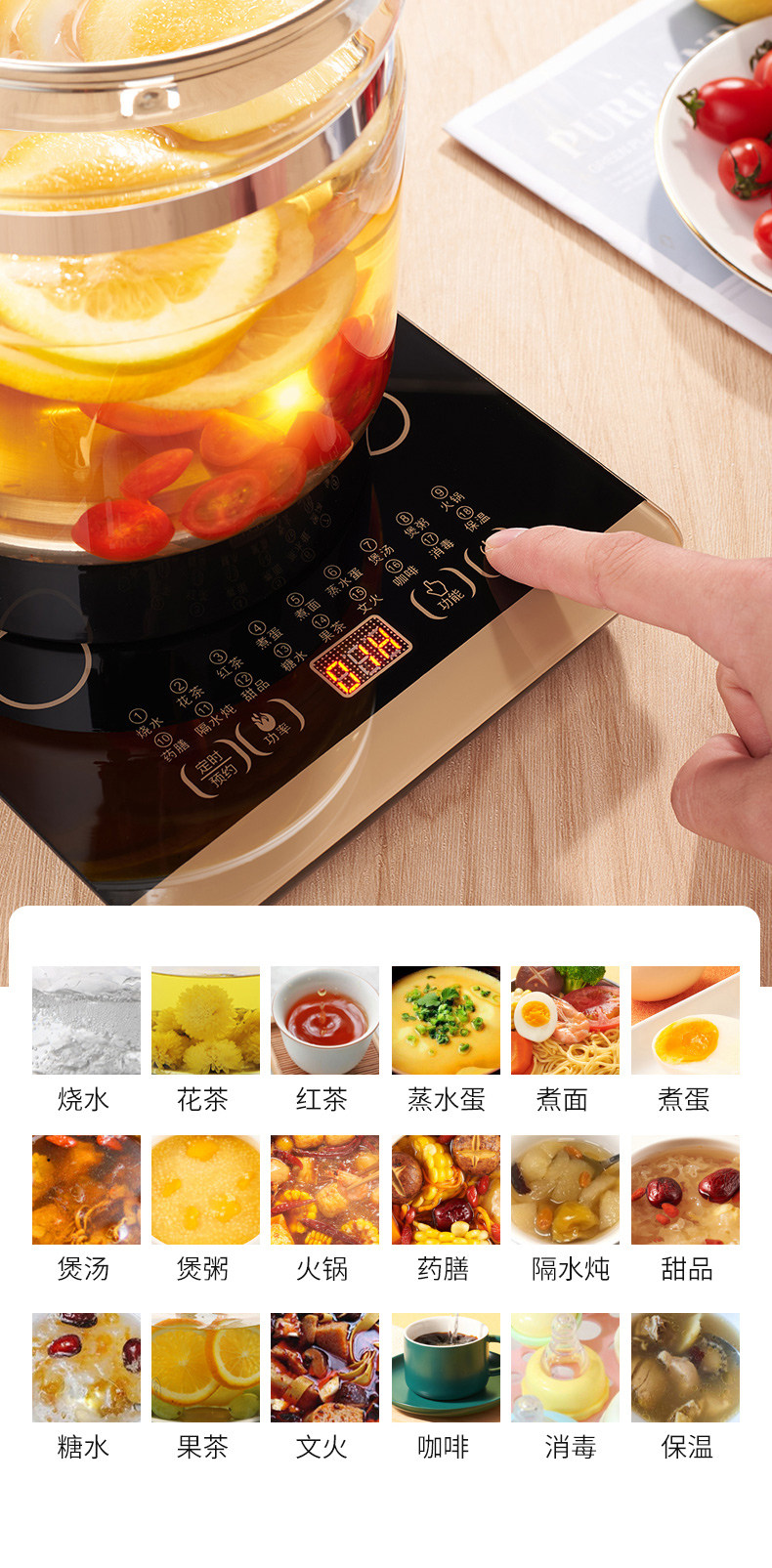 夏普多功能电热壶养生壶 2.8L大容量烧水壶 花茶水果茶煮茶器煮茶壶 KP-WT30L-W 白色 2.8L