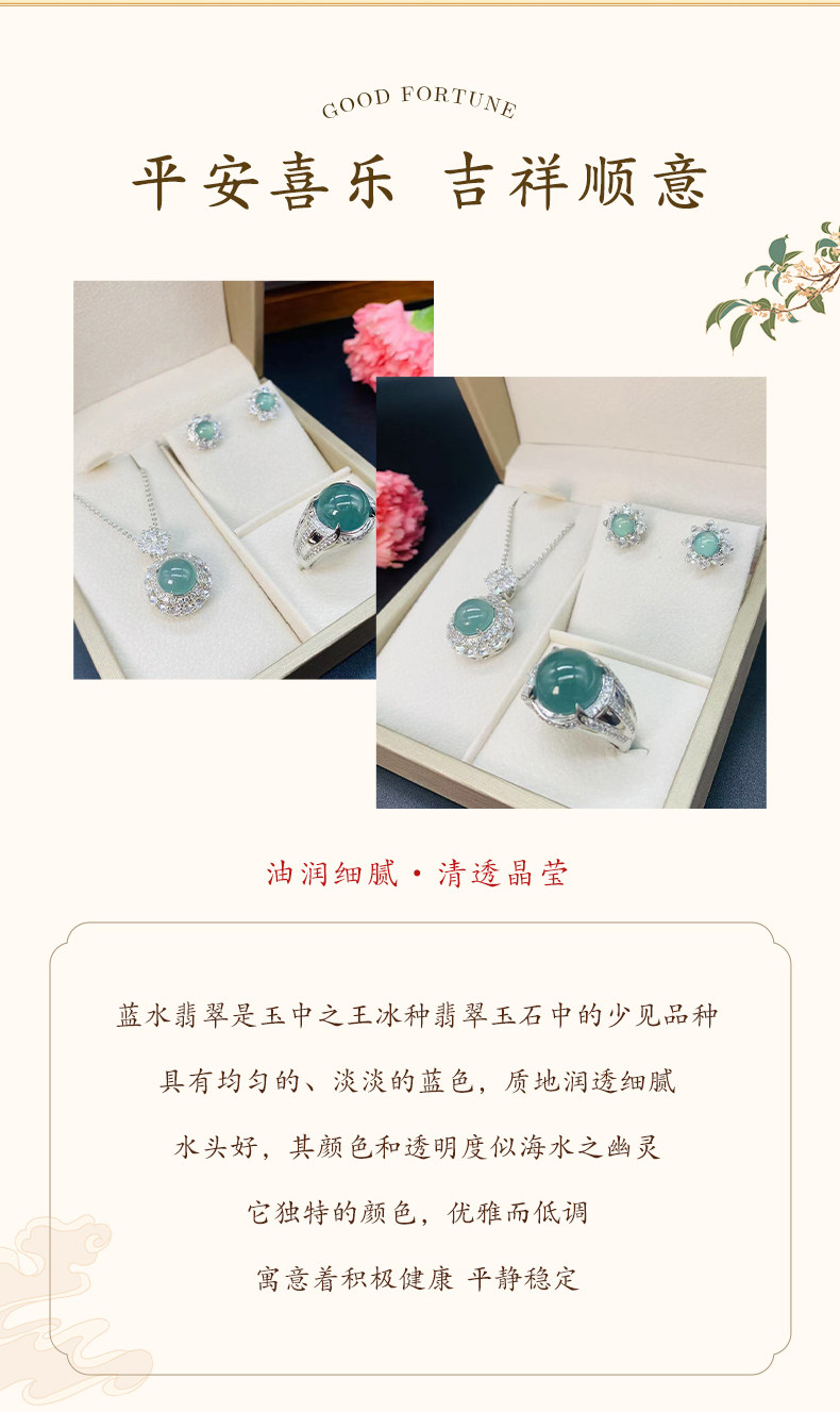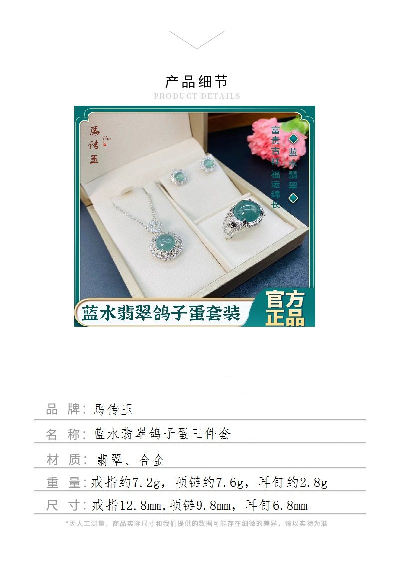 马传玉蓝水翡翠鸽子蛋套装MCY159