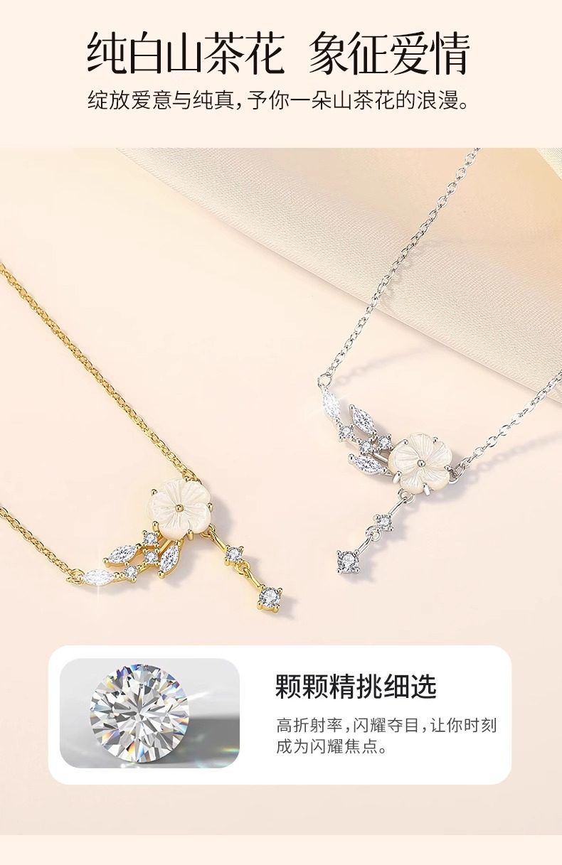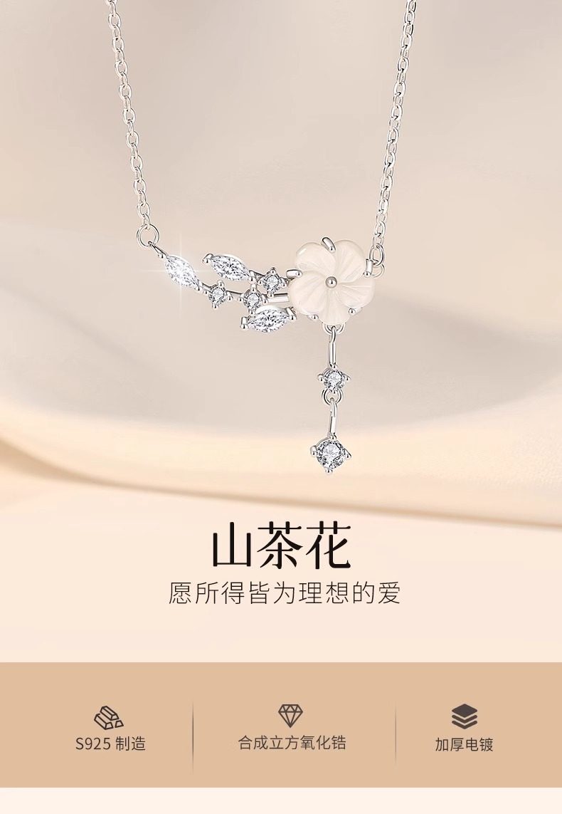 米沃蒂925银山茶花项链女轻奢小众设计花朵锁骨链颈饰七夕生日礼物