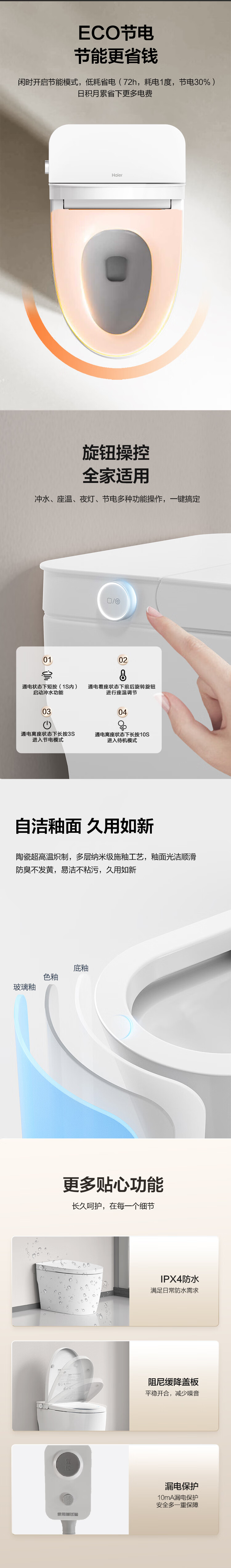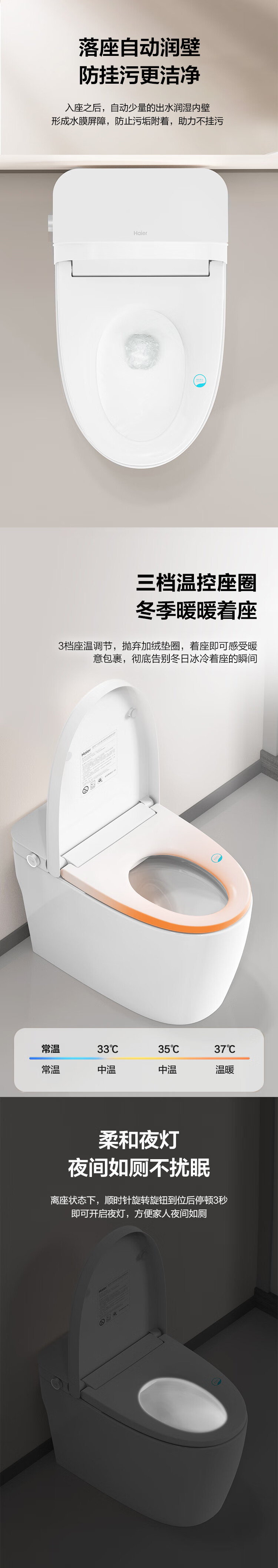 海尔/Haier 家用轻智能马桶一体机 旋钮操作 智能冲刷 座圈加热 无水箱智能马桶坐便器 型号:C2ZX4SE