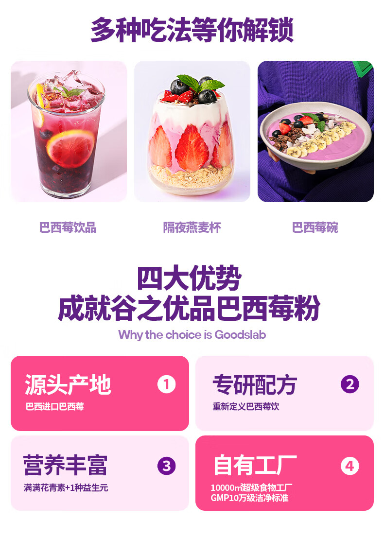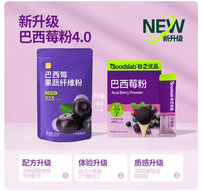 谷之优品【早C晚A】羽衣甘蓝粉150g+巴西莓粉105g 花青素果蔬冲饮代餐