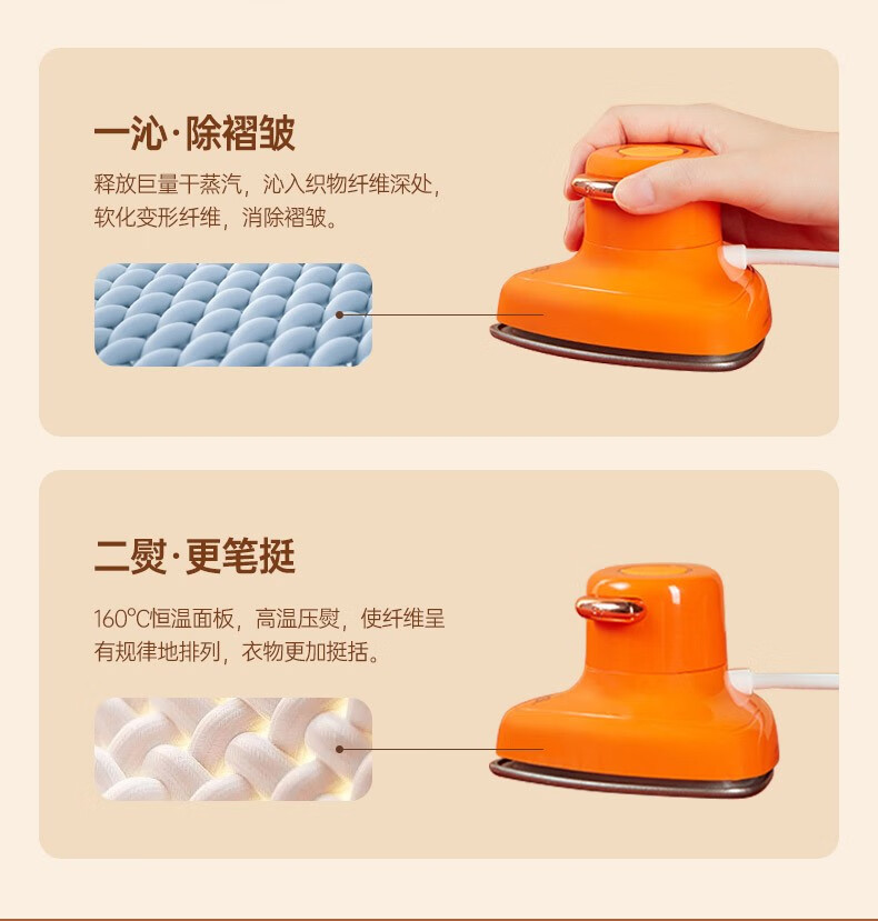 华光手持挂烫机家用电熨斗蒸汽熨烫机迷你小型出差旅行便携式烫衣服神器 橙色 SR02B
