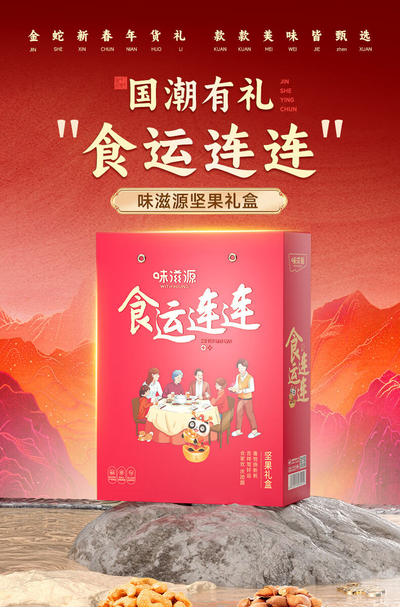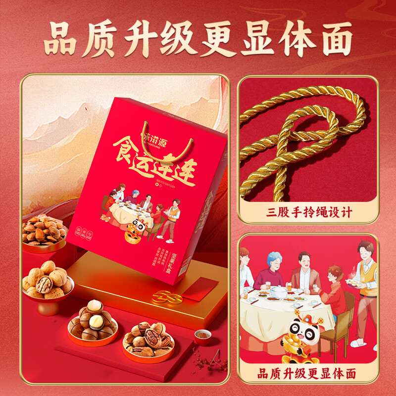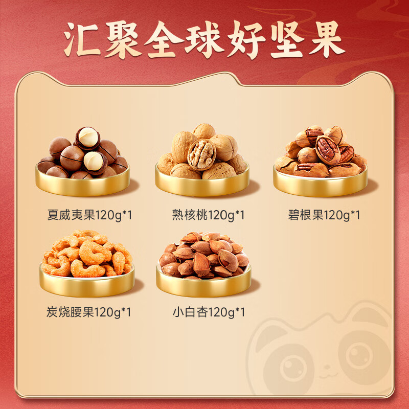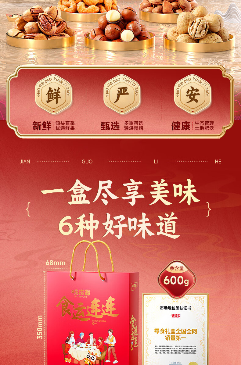味滋源 食运连连坚果礼盒600g【腰果120g*1袋+碧根果120g*1袋+小白杏120g*1袋+熟核桃120g*1袋+夏威夷果120g*1袋】