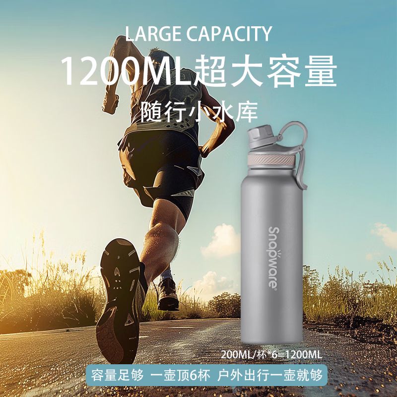 康宁 SNAPWARE 户外水壶 不锈钢运动保温杯 不锈钢运动健身户外旅行保温壶 水壶 大容量喝水杯子灰色 SN-STB-1200-G/CN 精美彩盒装