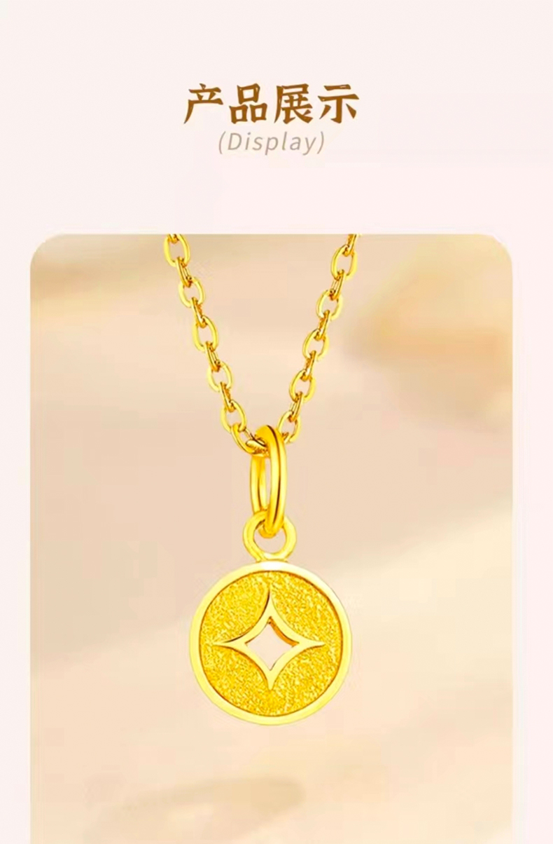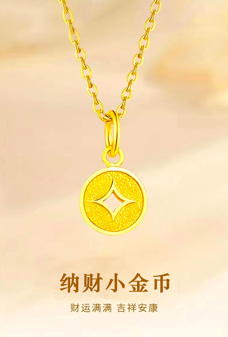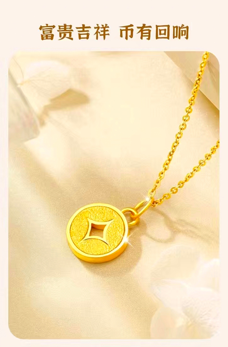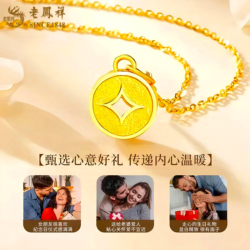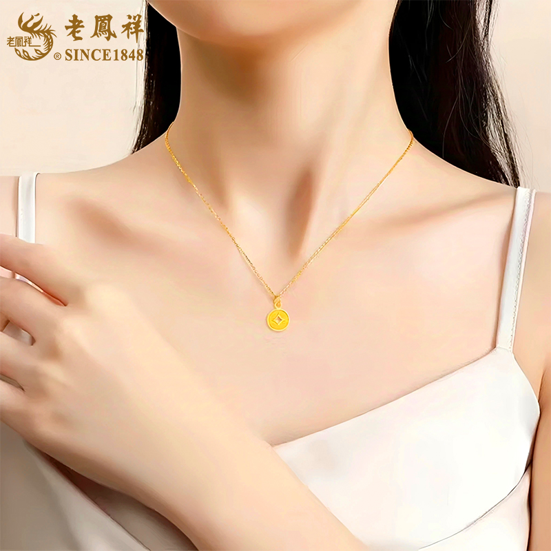 【每证一品】老凤祥招财纳福足金铜钱项链 纳财小金币 LFX01213(吊坠足金+配链S925银)送女友老婆结婚纪念礼