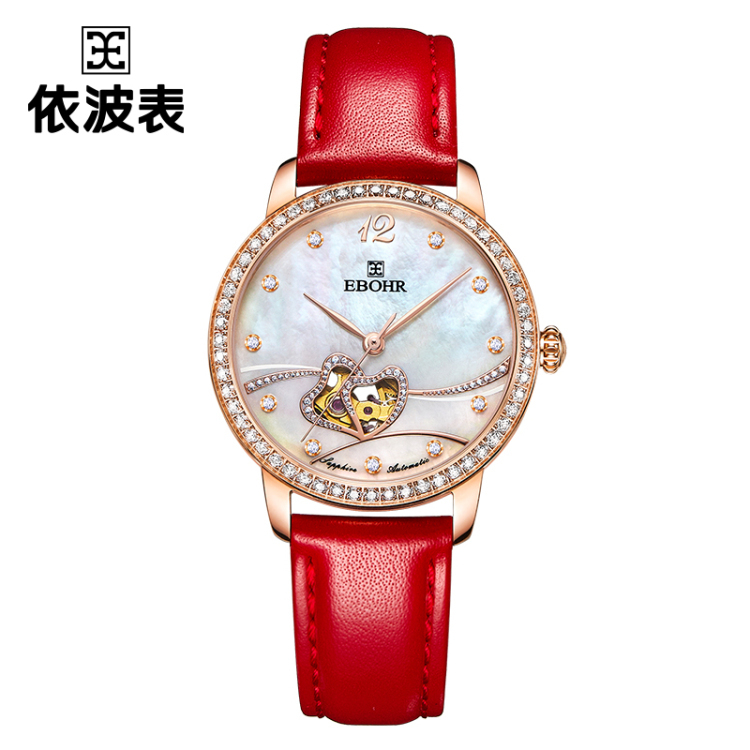依波钟表翎羽镂空透视自动机械镶嵌锆石皮带女表手表51050344