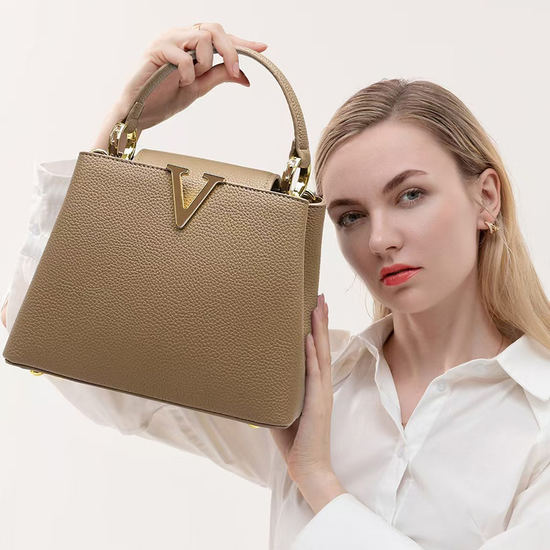 Mijiamei米茄美 高级小众拼色马鞍包 棕色M1253