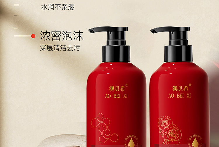 澳贝希洗沐两件套礼盒装 沐浴露500ML+洗发水500ML 深层清洁滋养套装 持久留香 家庭实惠装