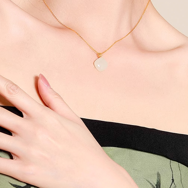 中国黄金和田玉若方吊坠 TGD989和田白玉+足银925【每证一品】