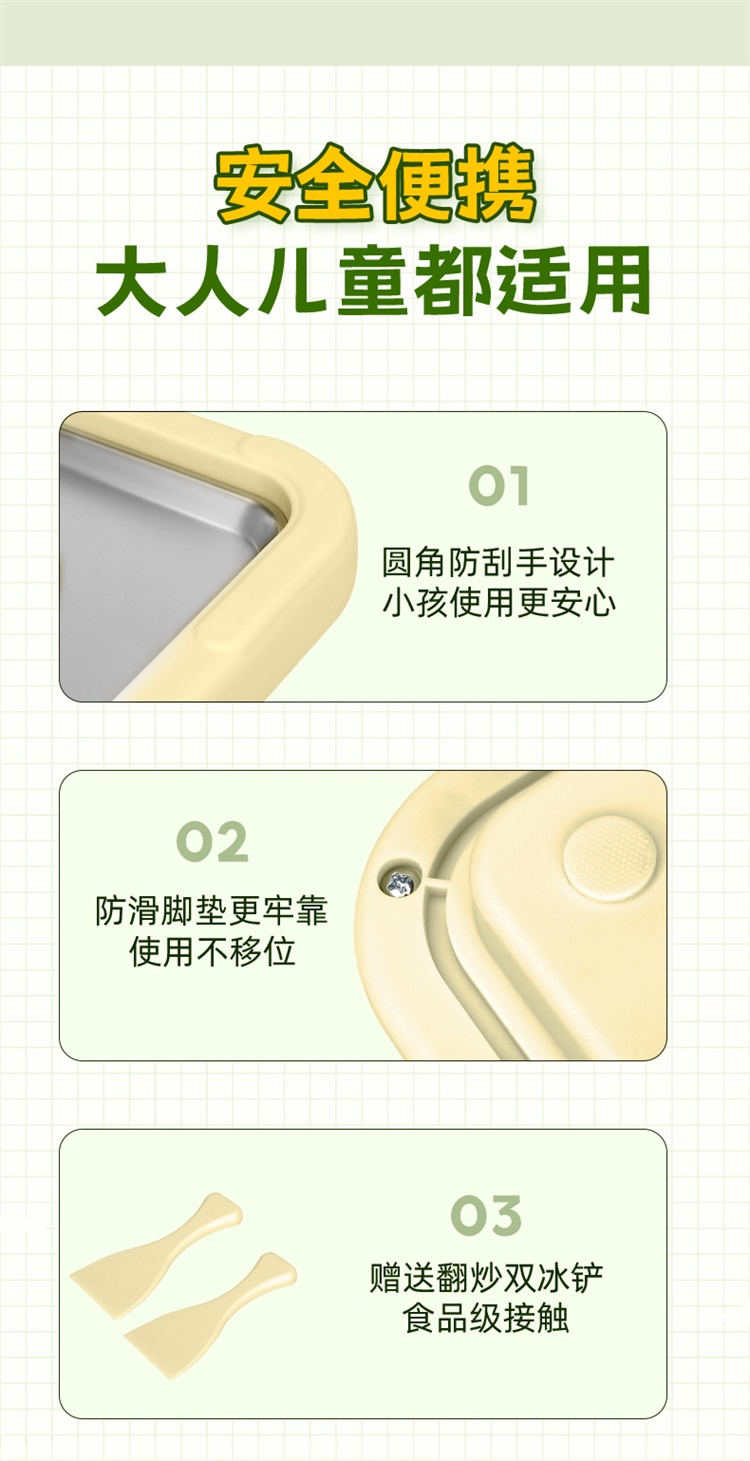 HYUNDAI韩国现代炒冰盘炒酸奶机炒冰机沙冰机制冰冰淇淋机雪糕机家用自制DIY炒冰板免插电网红制冰神器加大号+盖子26*21*4cm加大号加盖子QF-CBP02