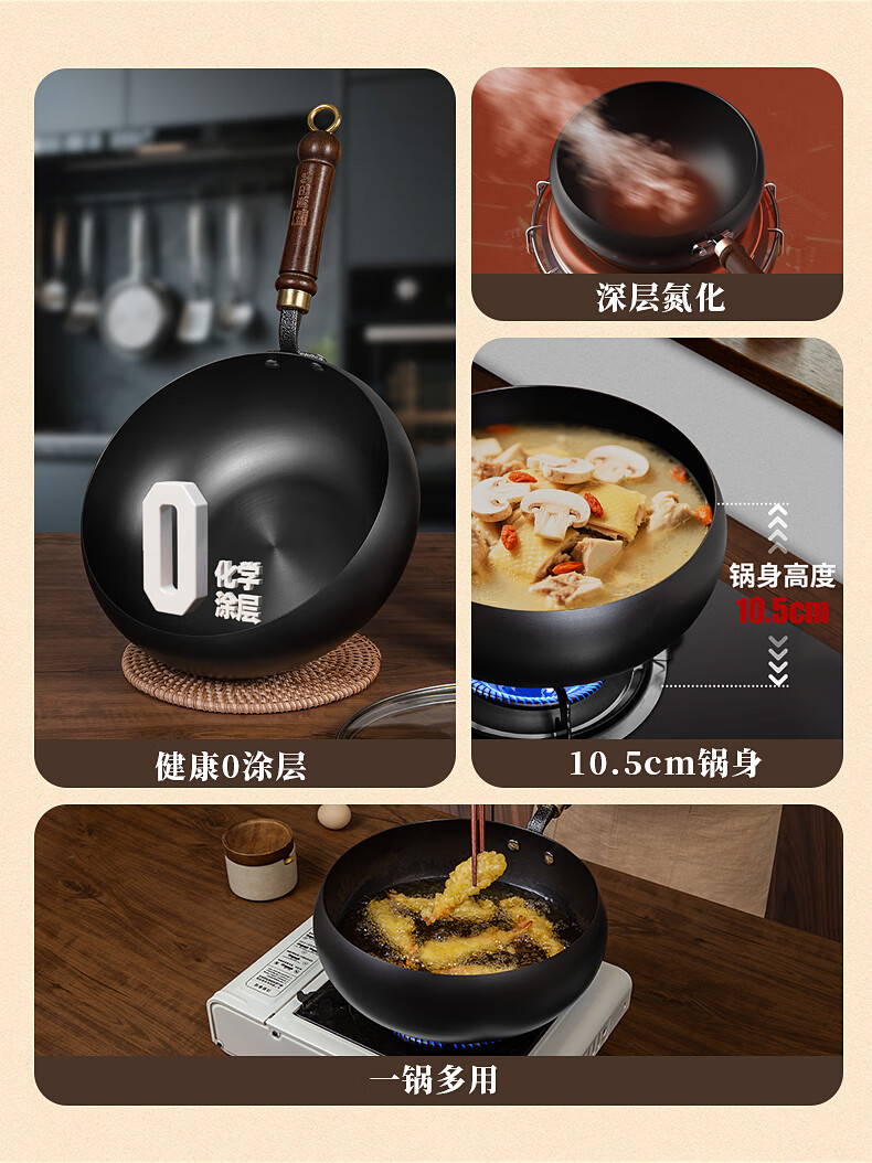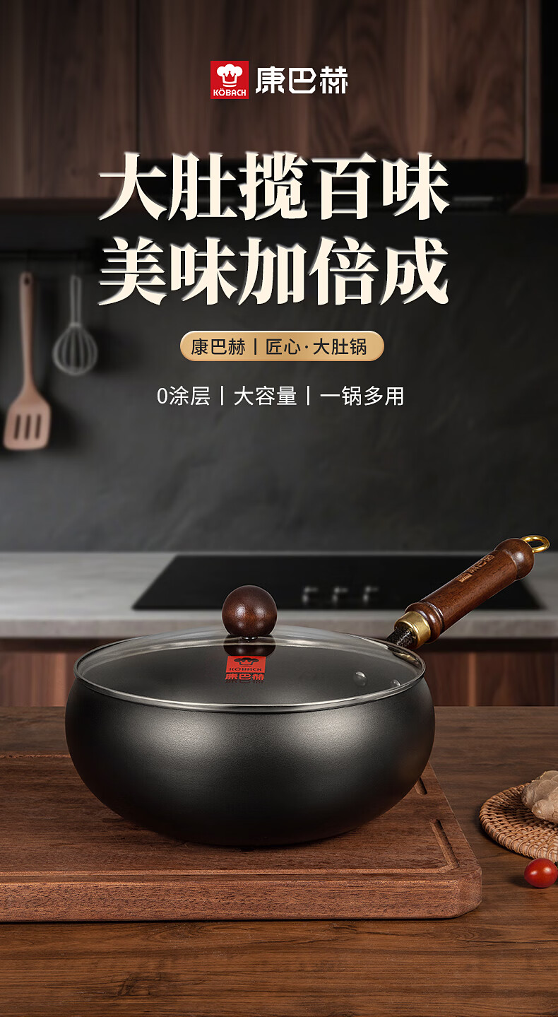 康巴赫多功能炒锅 健康0涂层 氮化工艺一锅多用 煎炒煮炸 网红款匠心大肚锅 24cm轻量化锅身 精美彩盒装 送父母送朋友 LPB-C24JX