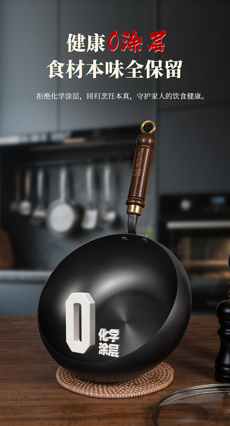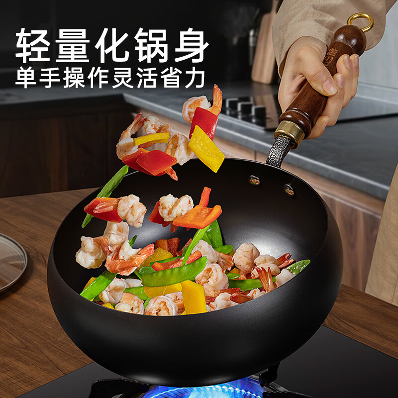 三禾0涂层臻不锈锤纹铁锅炒菜锅贝特炒锅32cm TC32P9