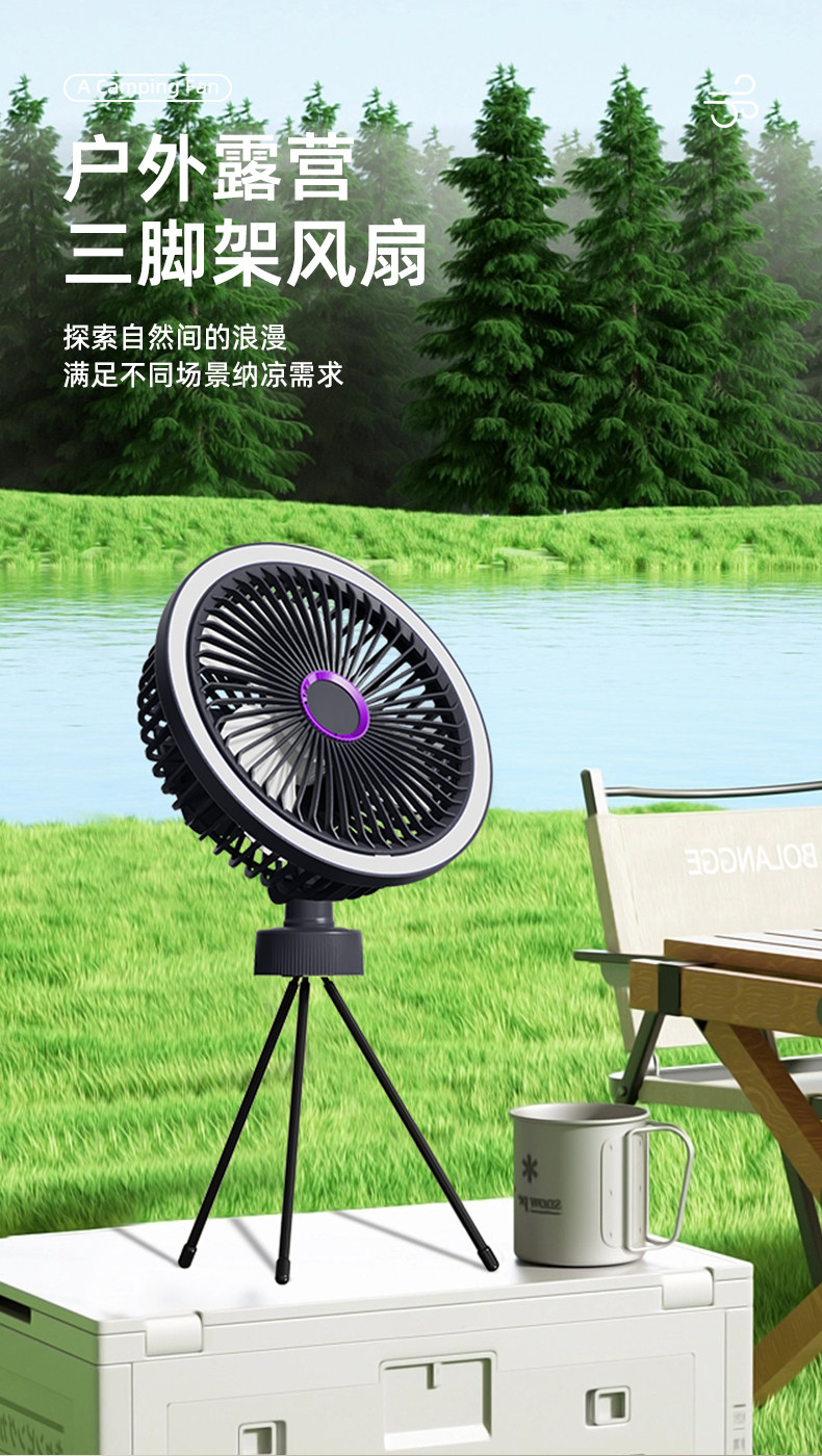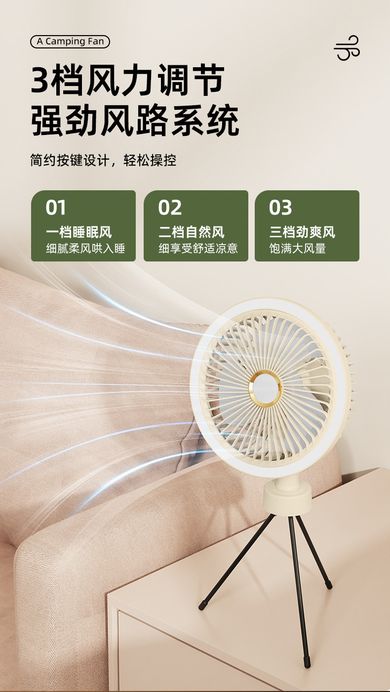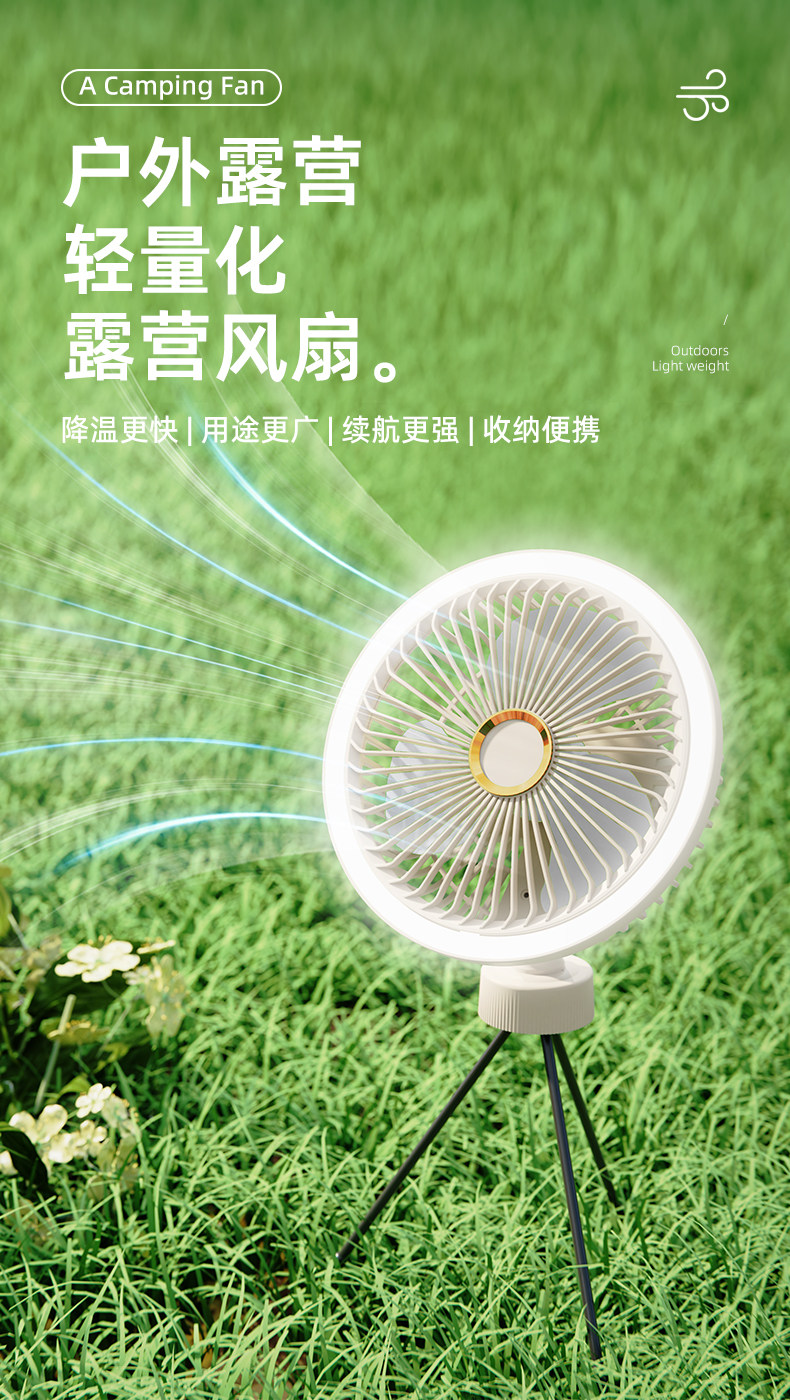 新款三脚架桌面风扇USB充电懒人便携式小风扇学生宿舍户外风扇-