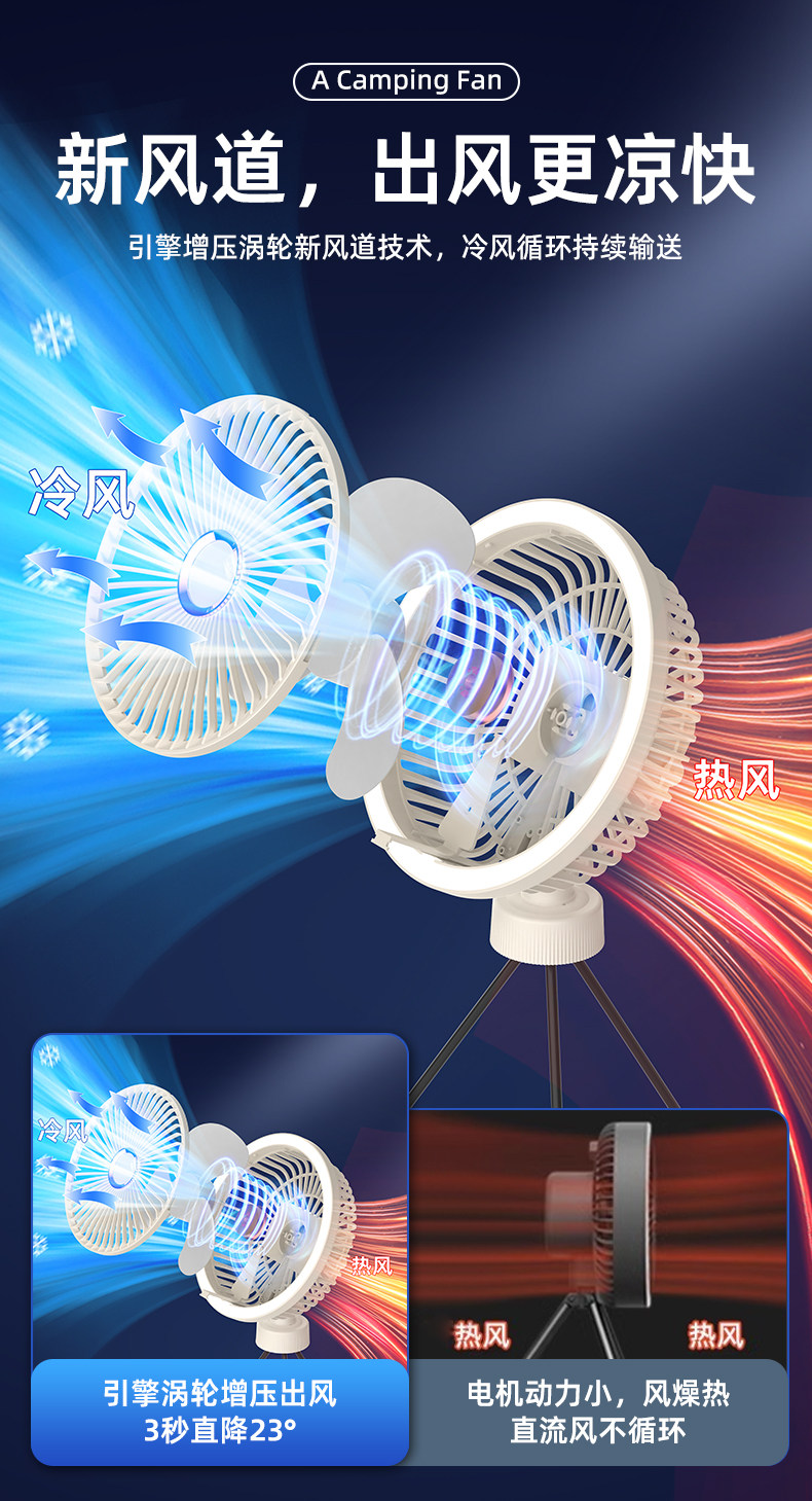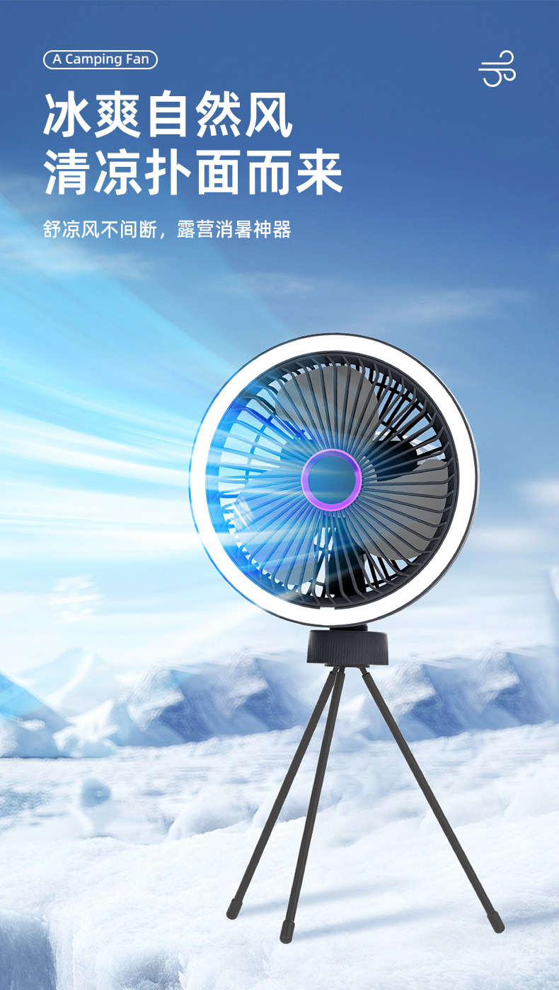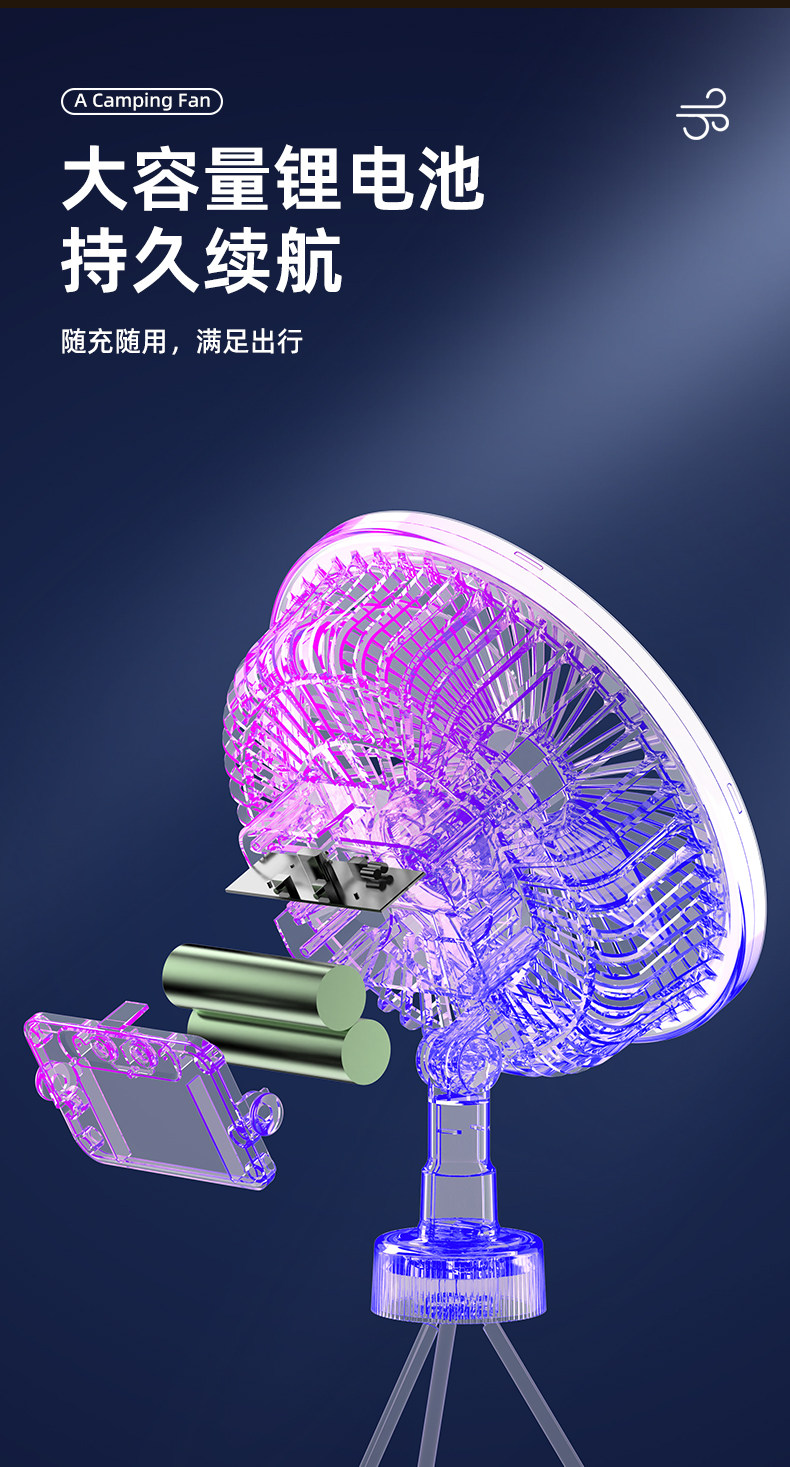 新款三脚架桌面风扇USB充电懒人便携式小风扇学生宿舍户外风扇-
