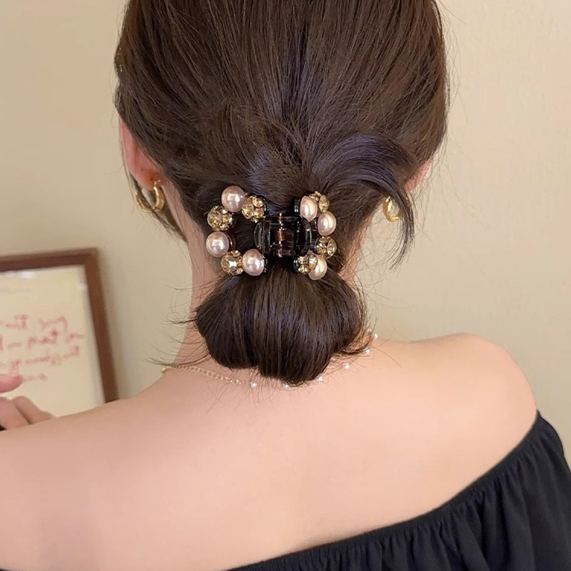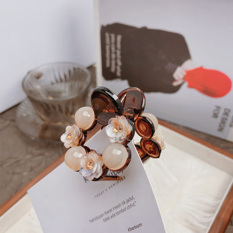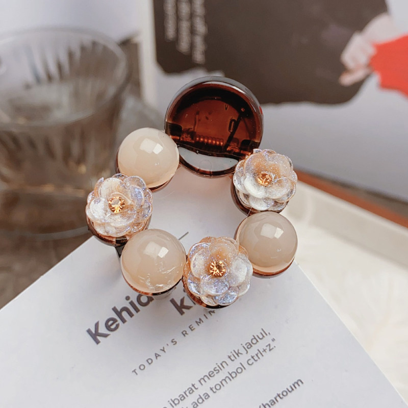梓延严选 温柔披肩半扎发抓夹气质香槟山茶花环形头饰