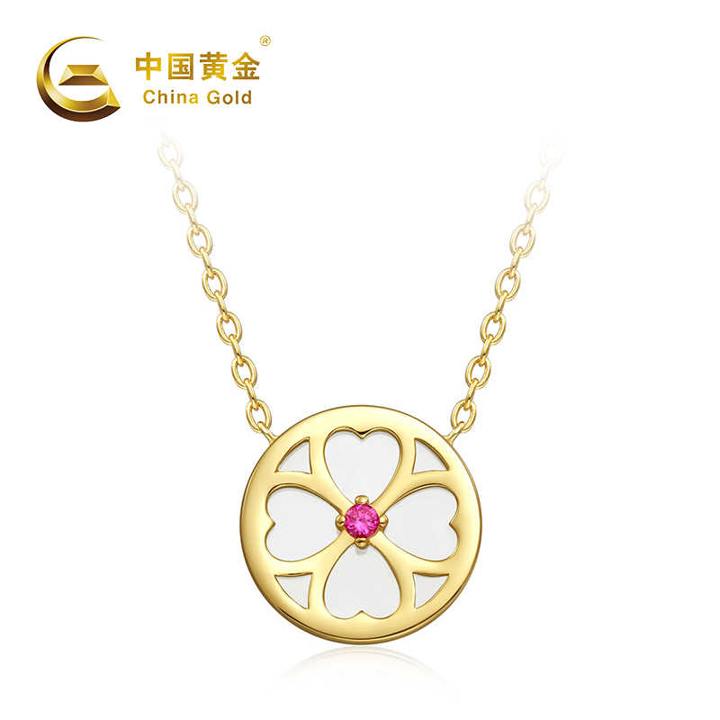 包邮-中国黄金 S925银镶和田玉樱花项链镀金色ZGHJ220641(支持线下验货) 【新疆西藏不发货】