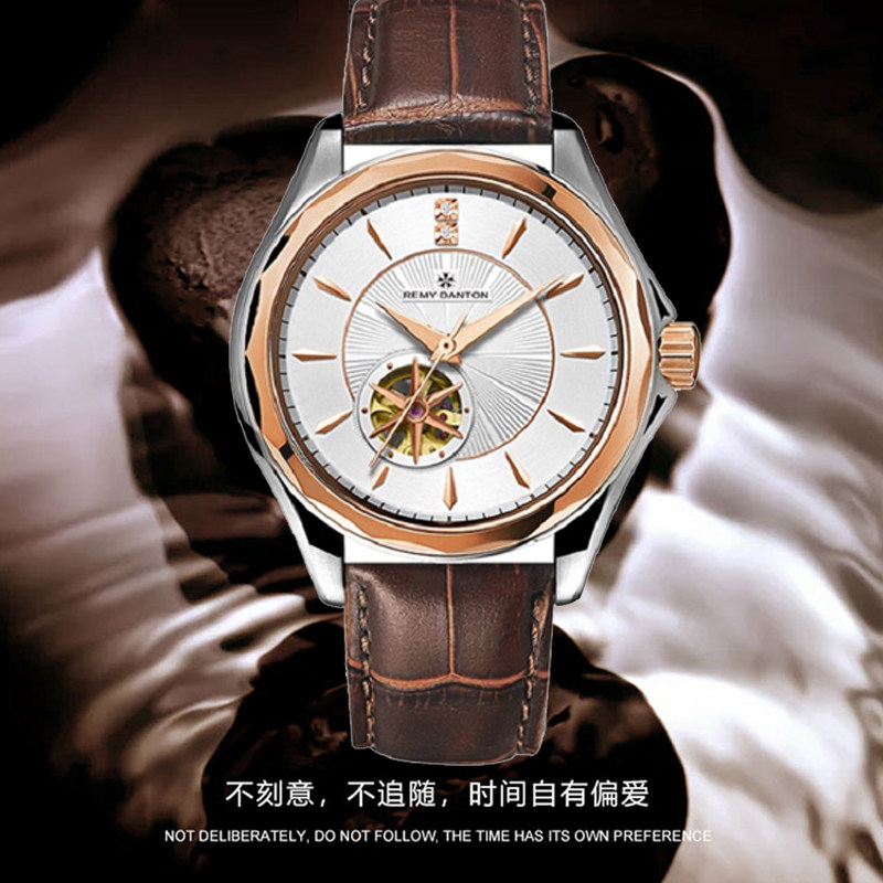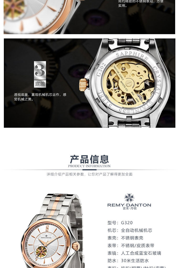 雷米丹顿(REMY DANTON)正品全自动镂空机械表商务日历男士手表钢带简约腕表G320.01