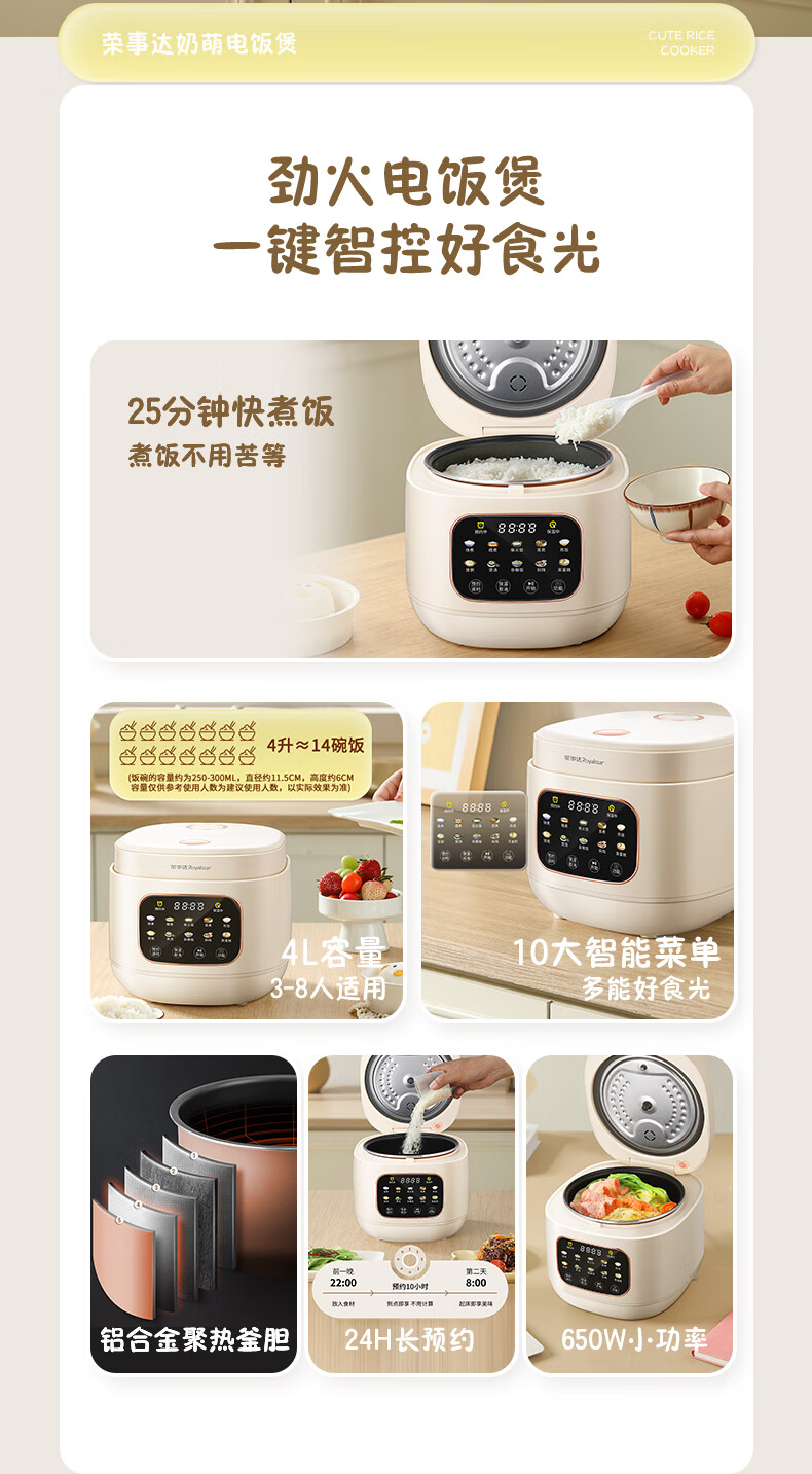 荣事达 智能电饭煲 大容量彩屏电饭锅 煲汤米饭多功能电饭煲 送蒸格 热饭 精美彩盒装 RFB-S40HK