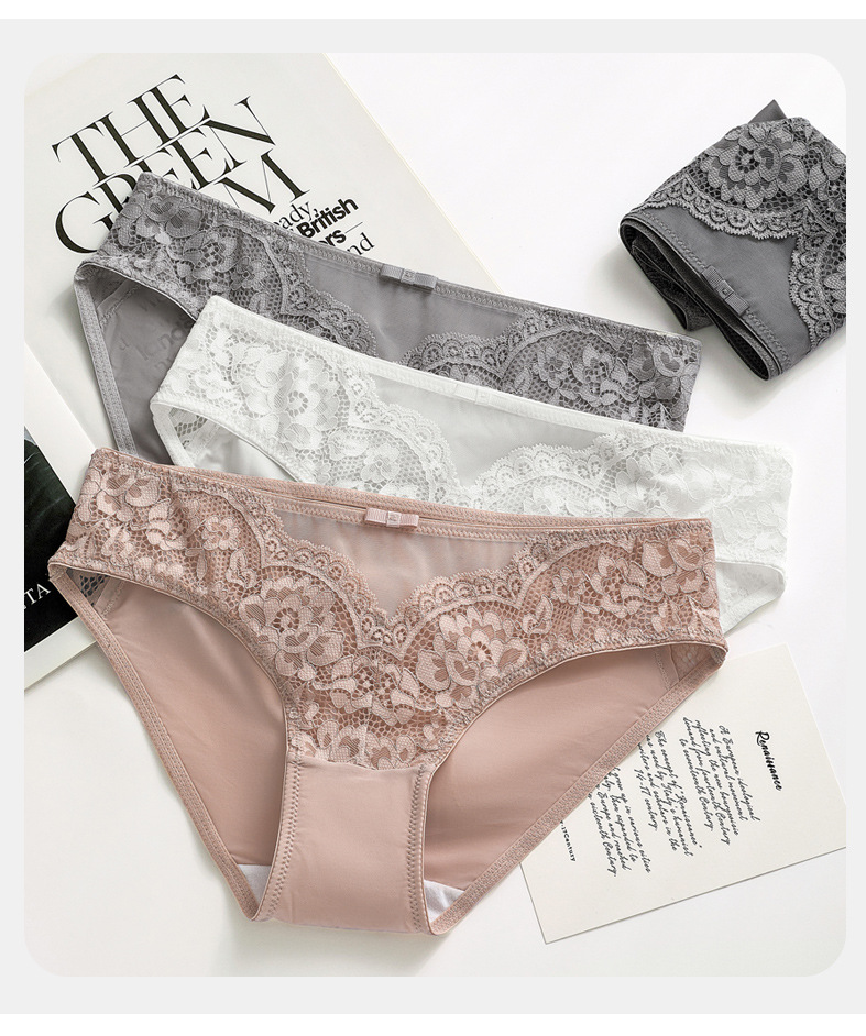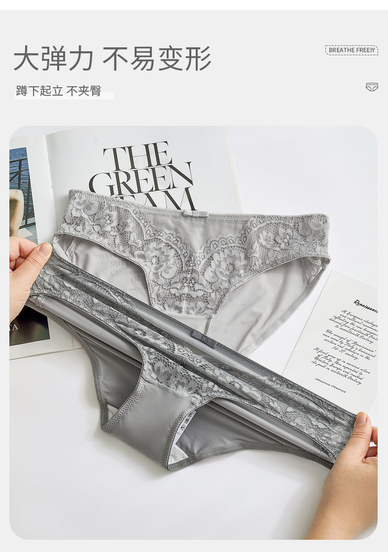高级感蕾冰丝女士内裤性惑感女生款夏薄款禁欲系全纯棉抗 菌裆内裤【5条】