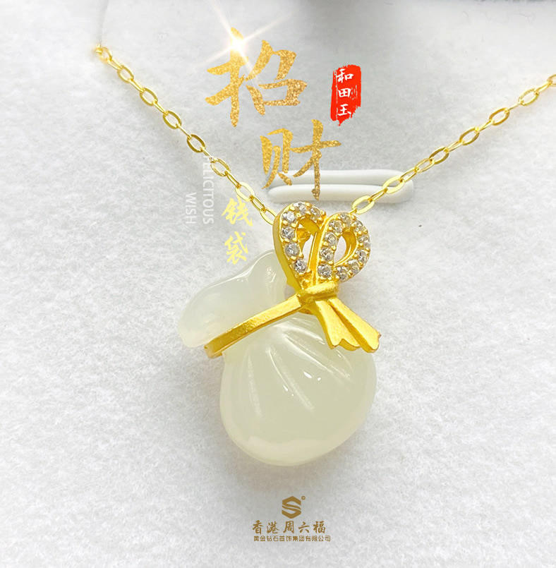 香港周六福银镶玉-福袋 吊坠+项链 新疆、西藏、青海不发货
