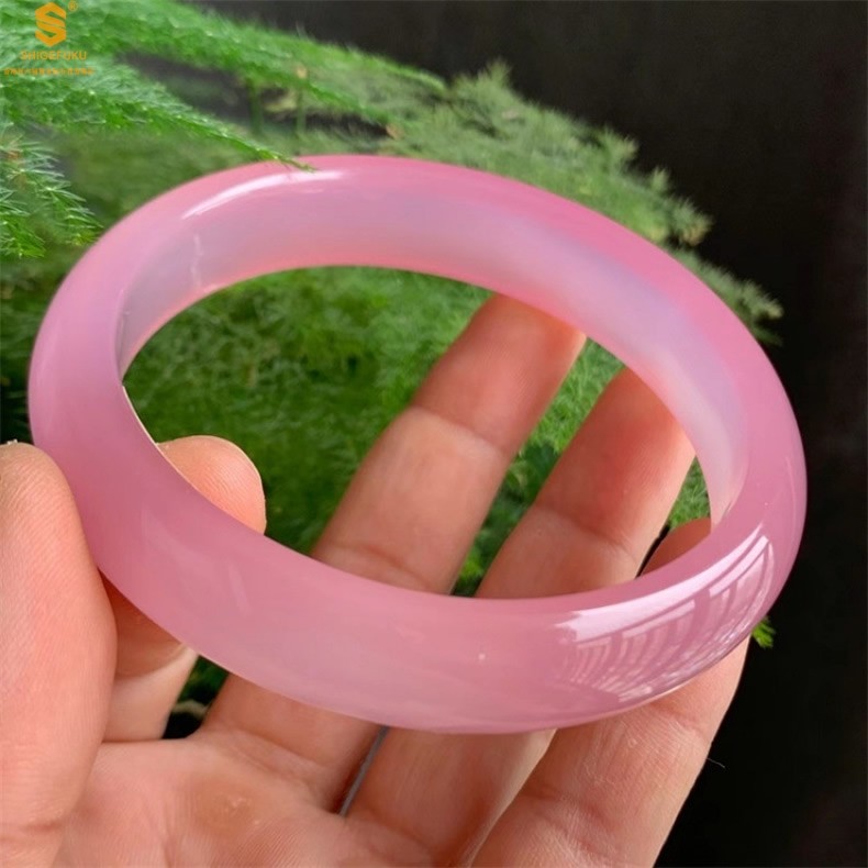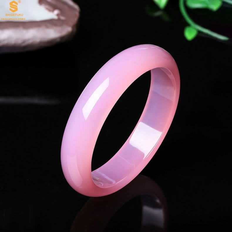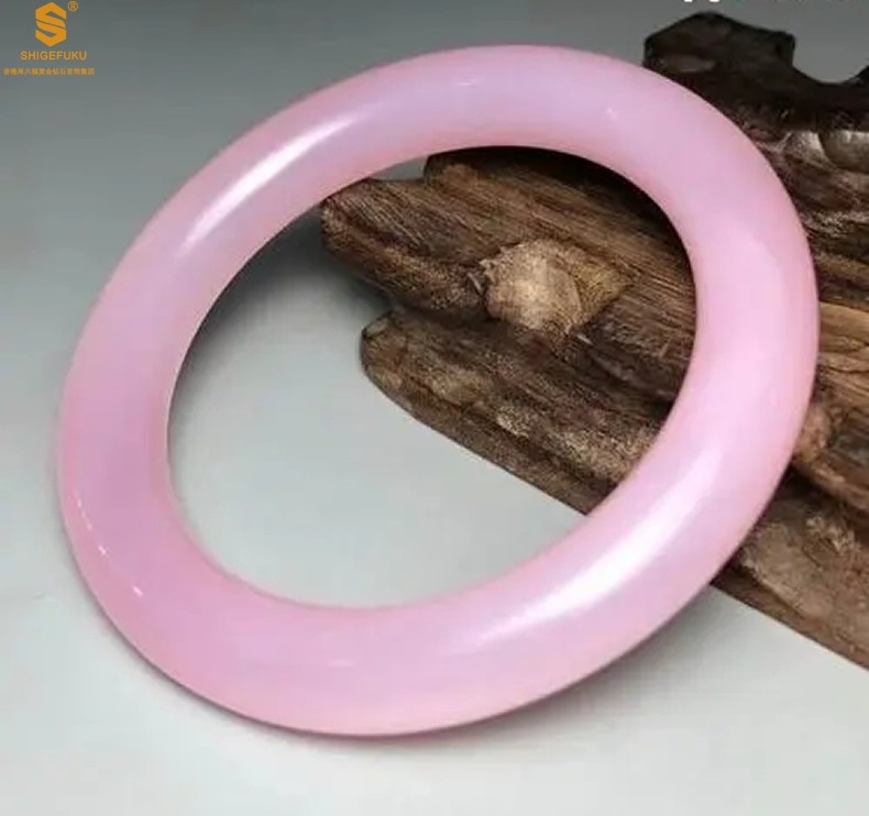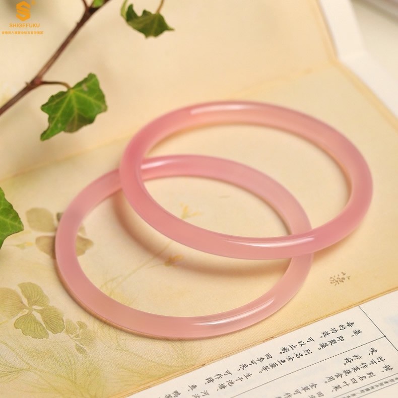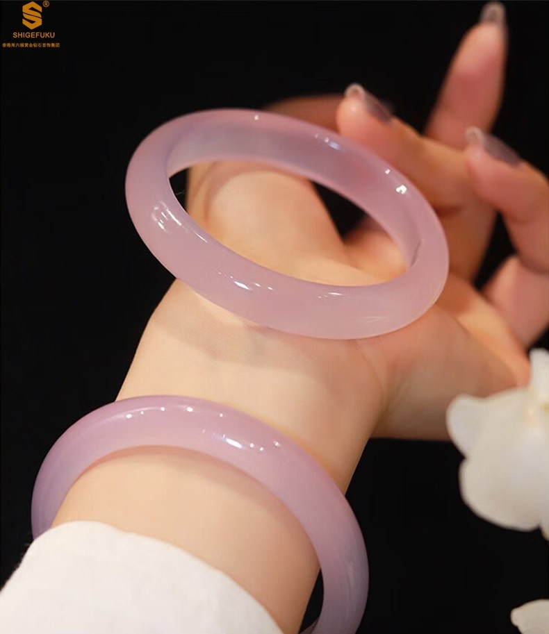 香港周六福黄金钻石首饰阿富汗粉白玉手镯