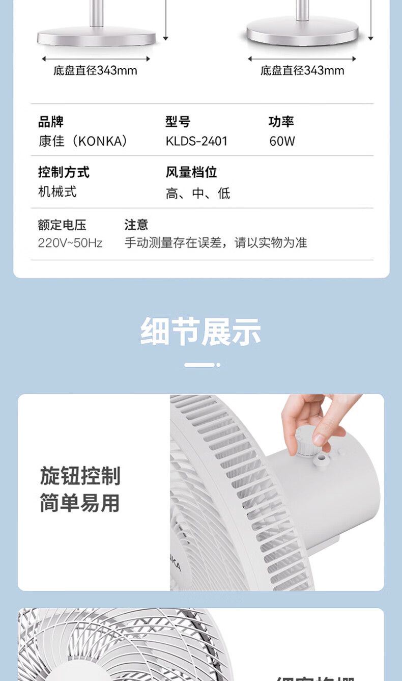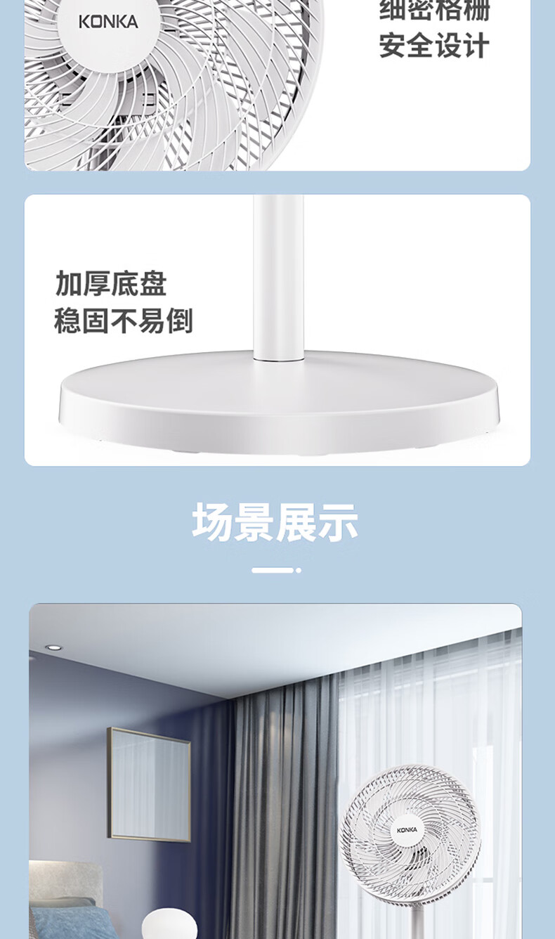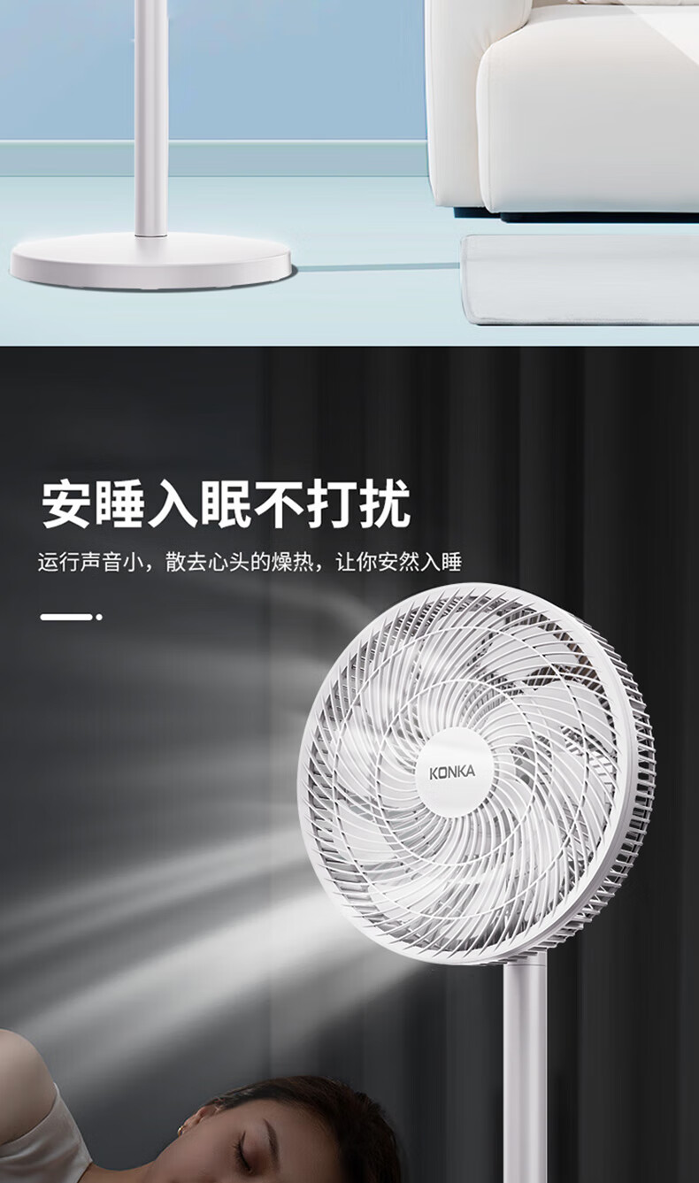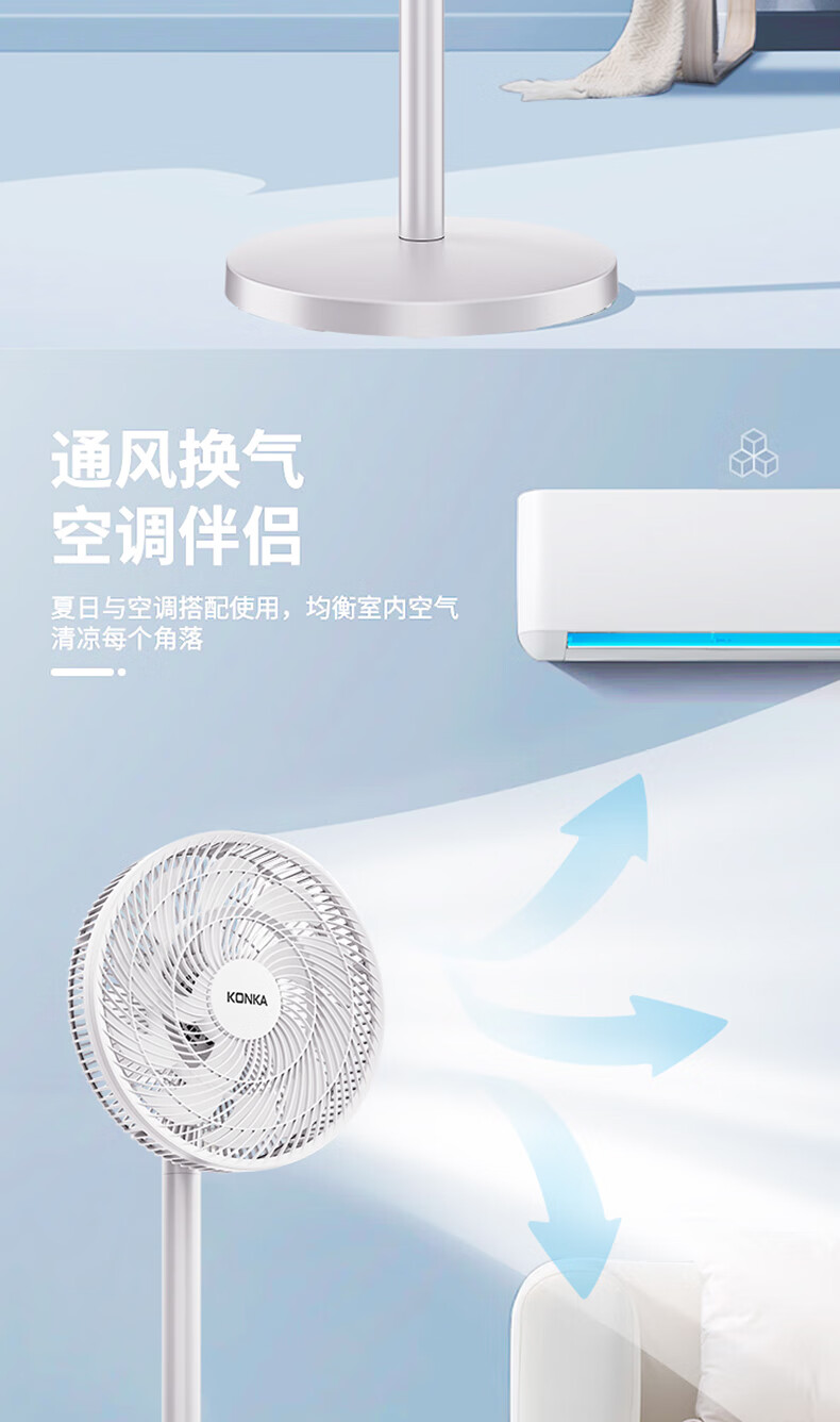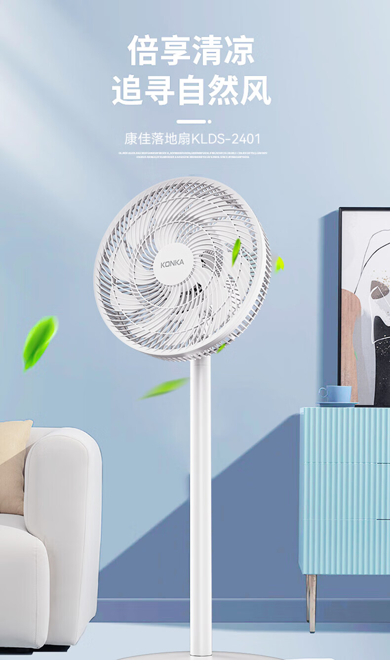康佳KONKA落地电风扇 普区包邮 十叶扇立式低噪家用宿舍风扇节能强劲大风力空气循环广角送风 KLDS-2401