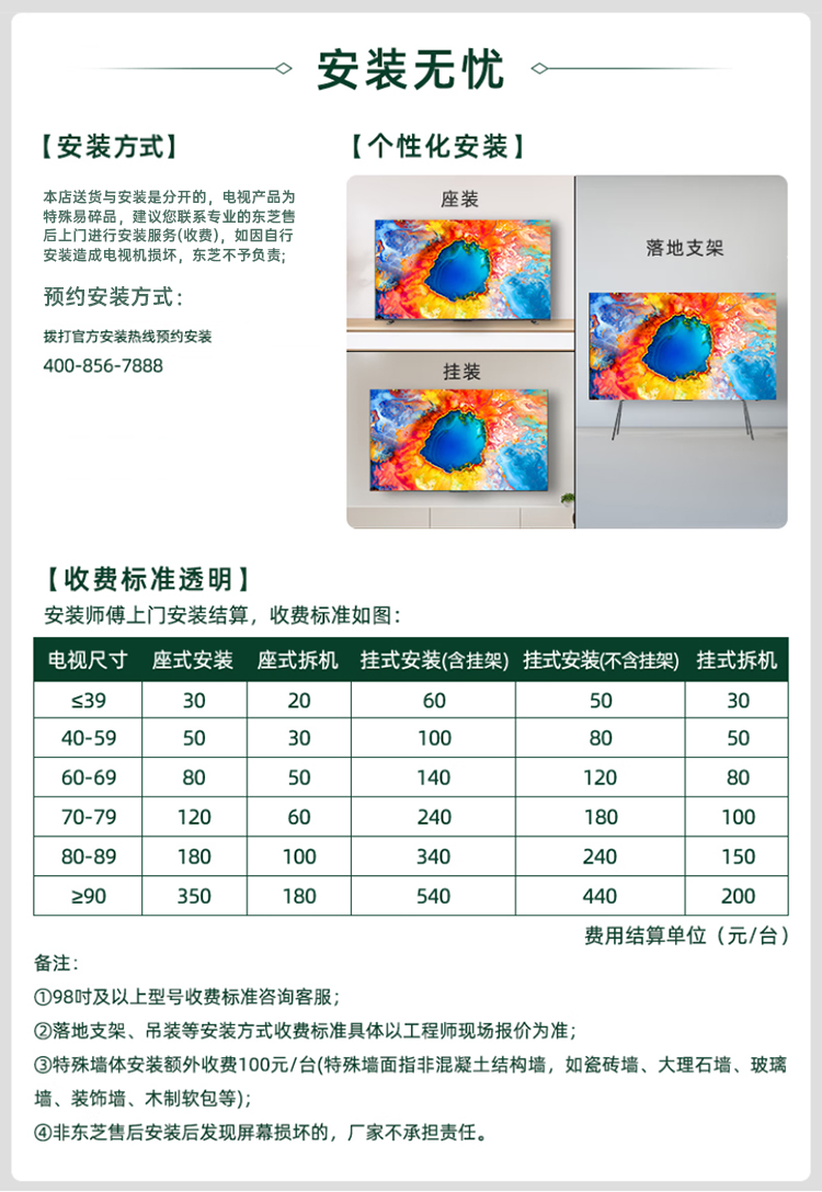 东芝电视65C240MF 65英寸 2GB+32G 超高清4K 100%高色域 智能液晶平板电视机