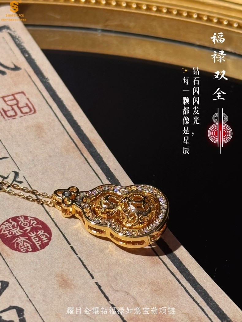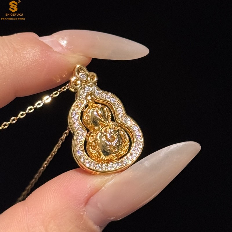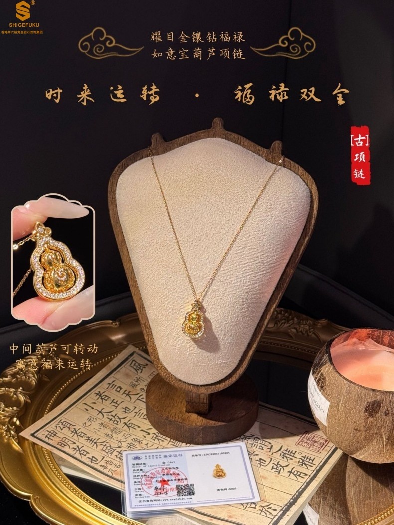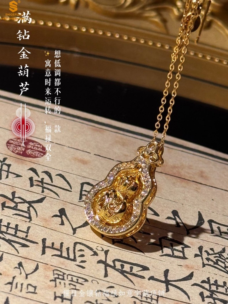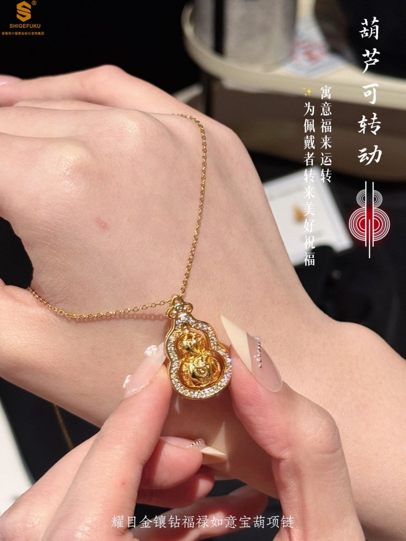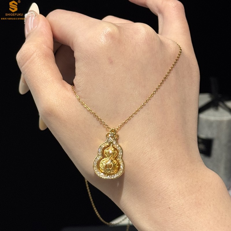 香港周六福黄金钻石首饰耀目金镶钻福禄如意宝葫项链