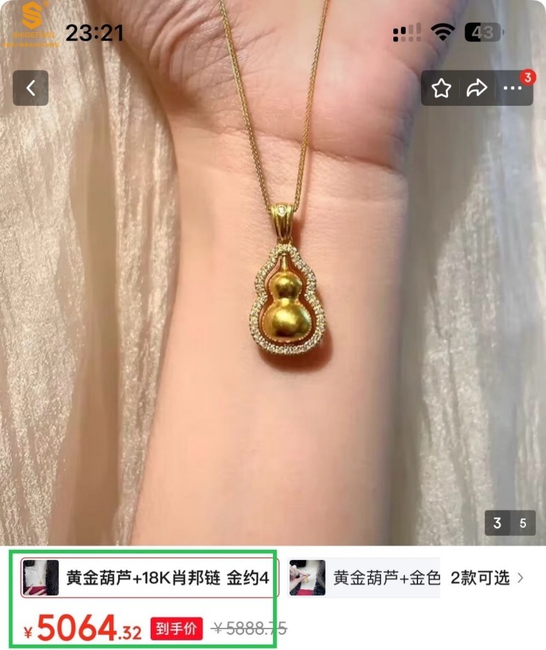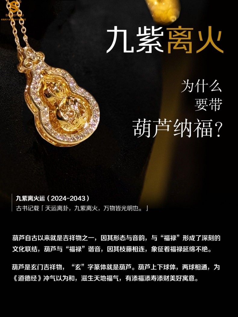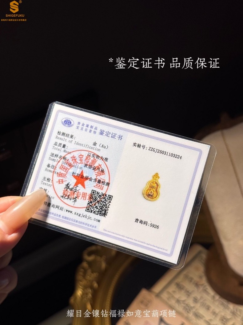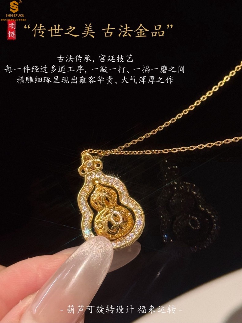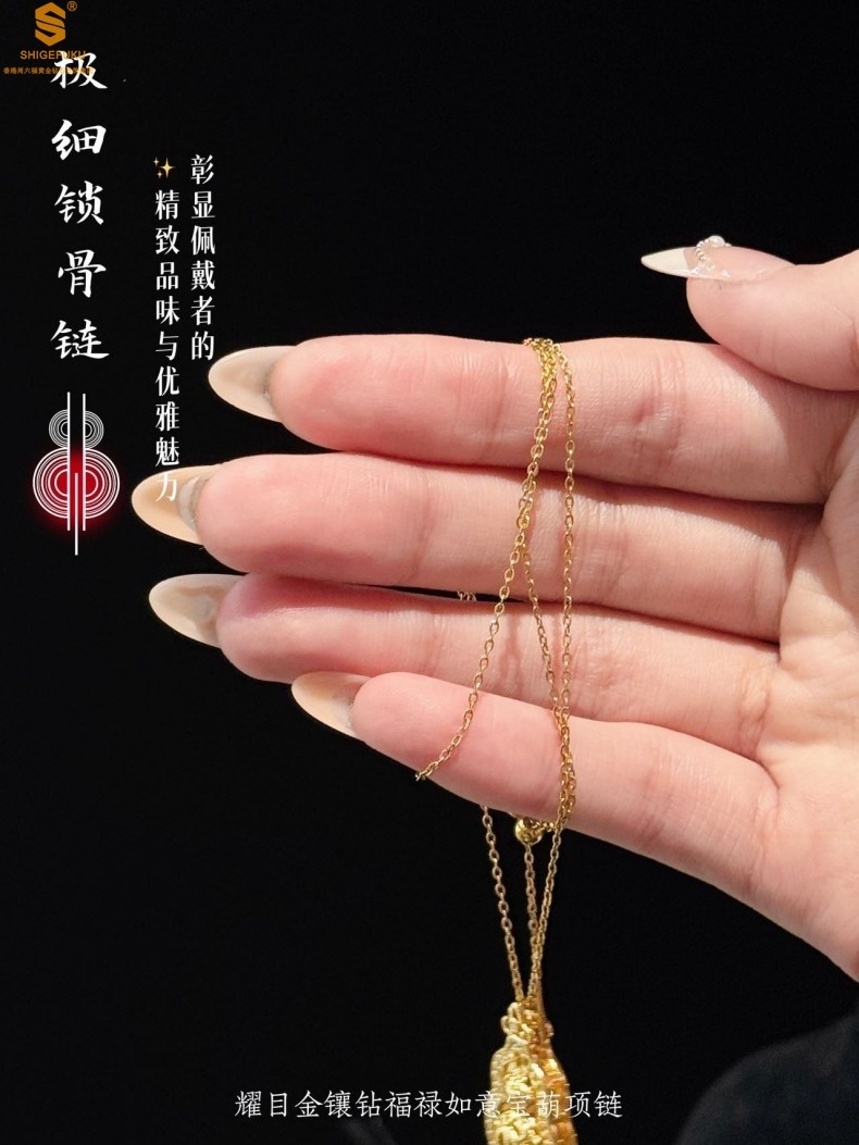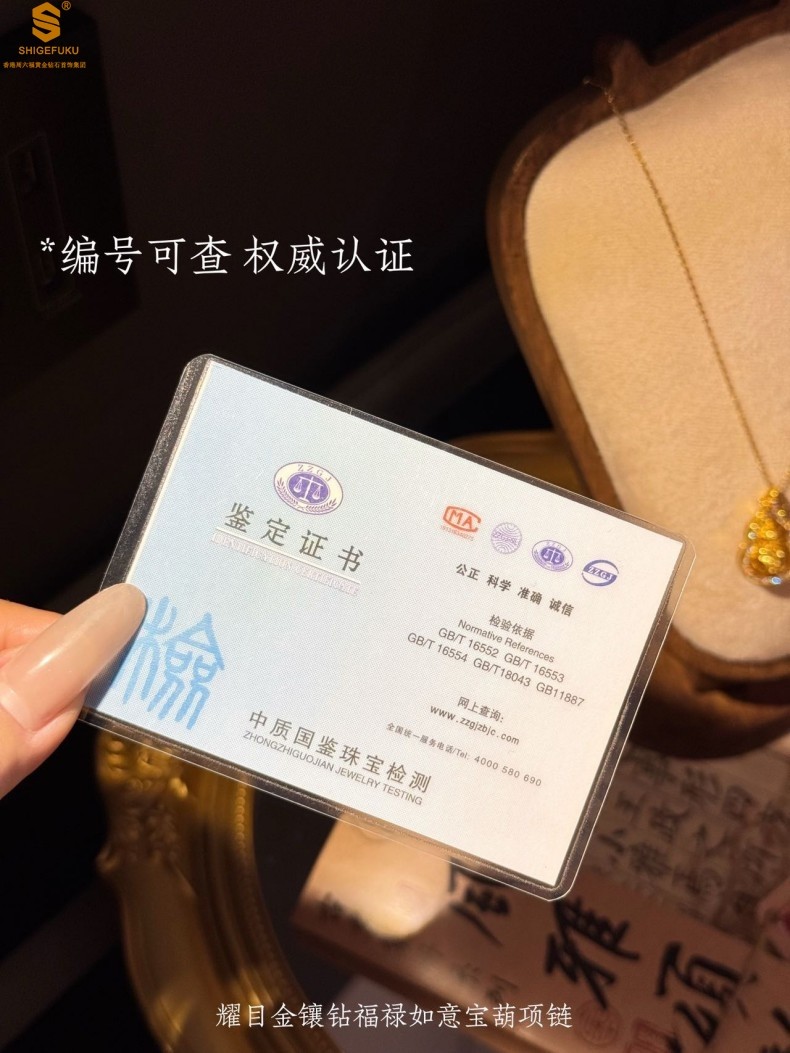 香港周六福黄金钻石首饰耀目金镶钻福禄如意宝葫项链