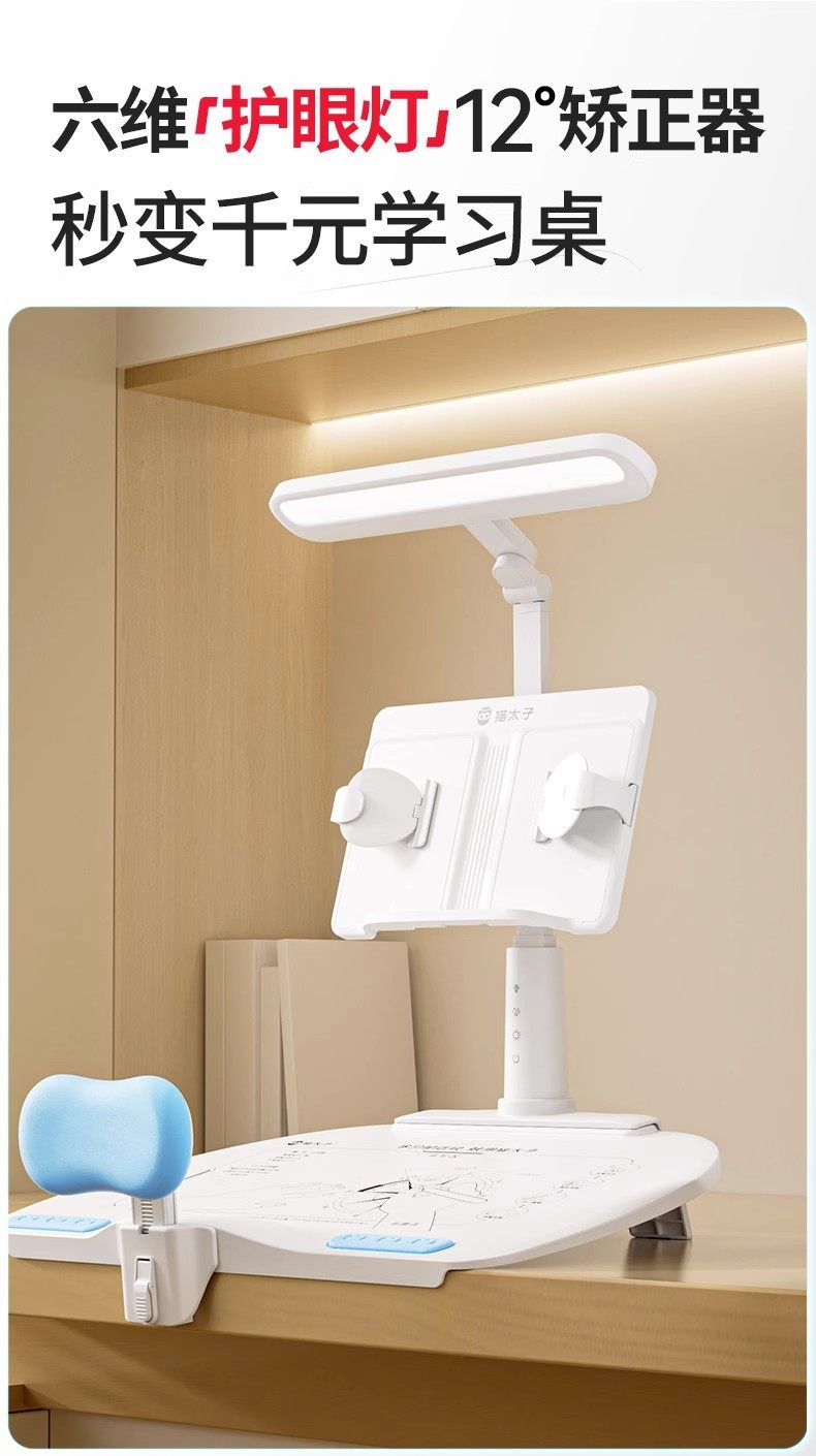 【猫太子M1443-13】坐姿卫士 黄金12°六维正姿学习台PLUS(护眼台灯+阅读架+矫正器)