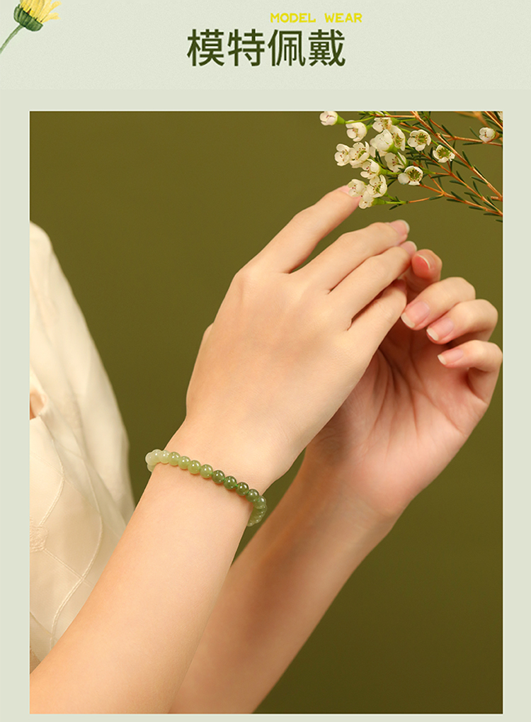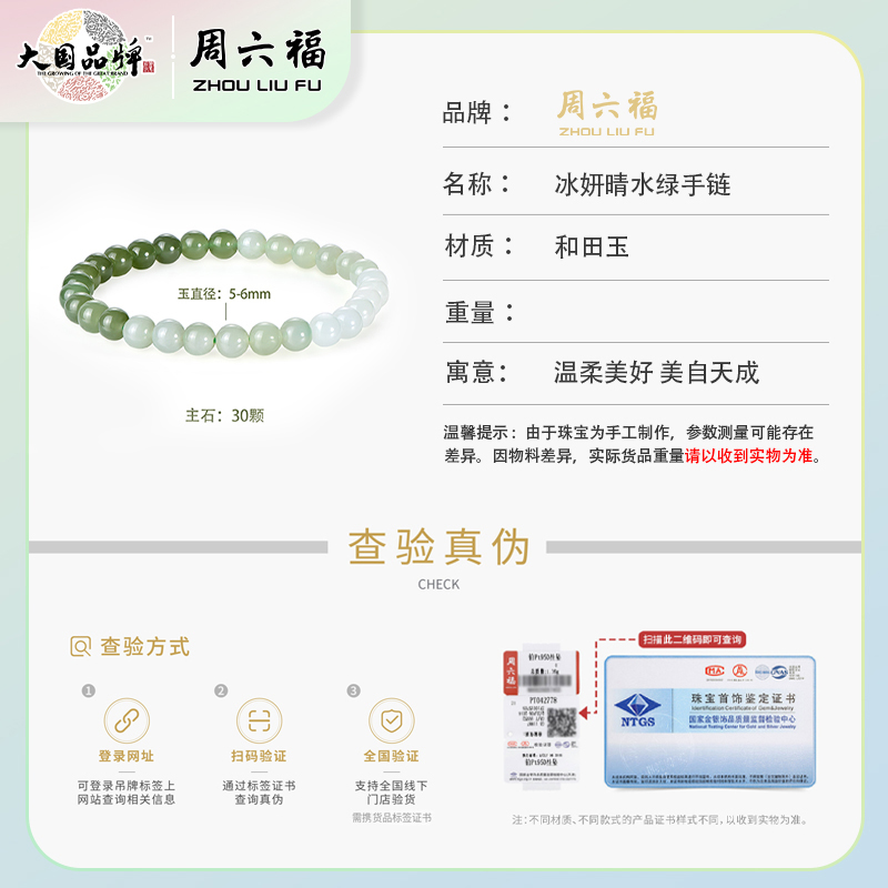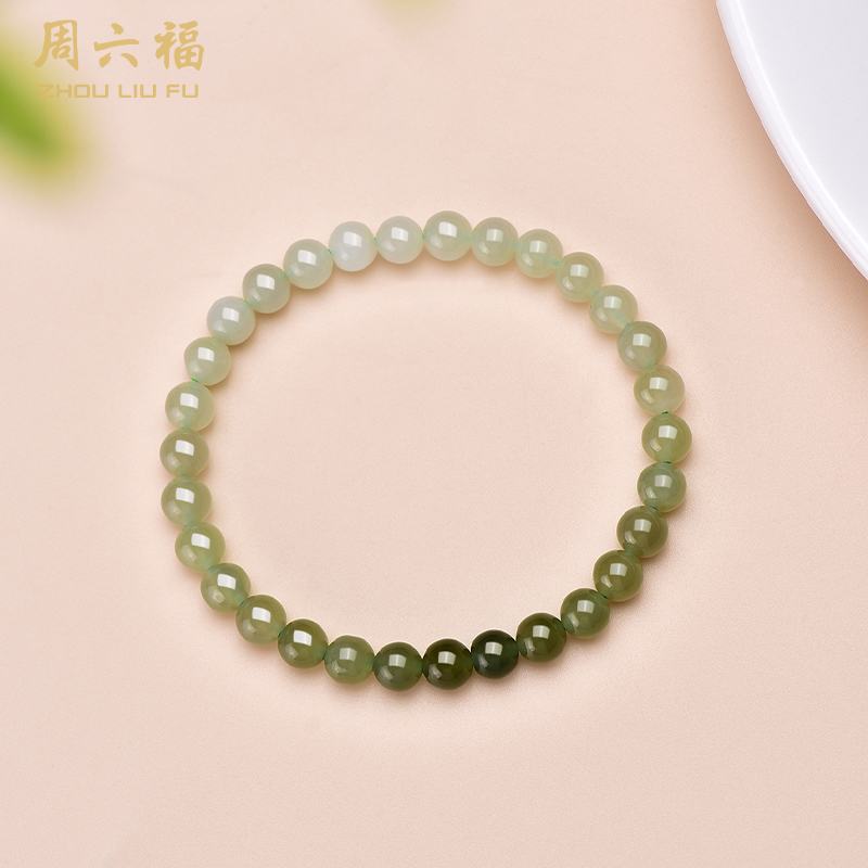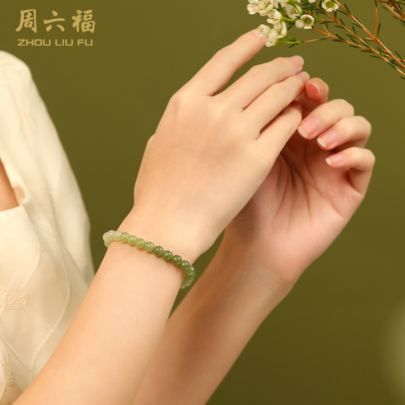 【每证一品】周六福冰妍晴水绿手链和田玉手链ZLFY121552 节日礼物生日礼物 送女友送妈妈送朋友 母亲节礼物