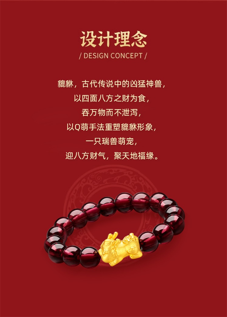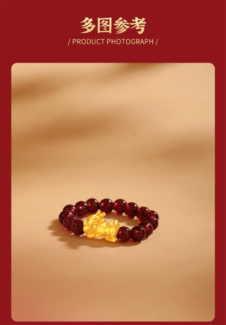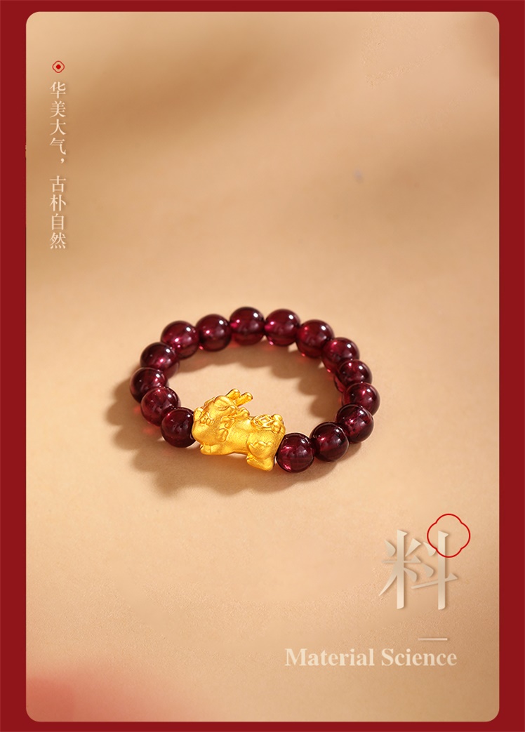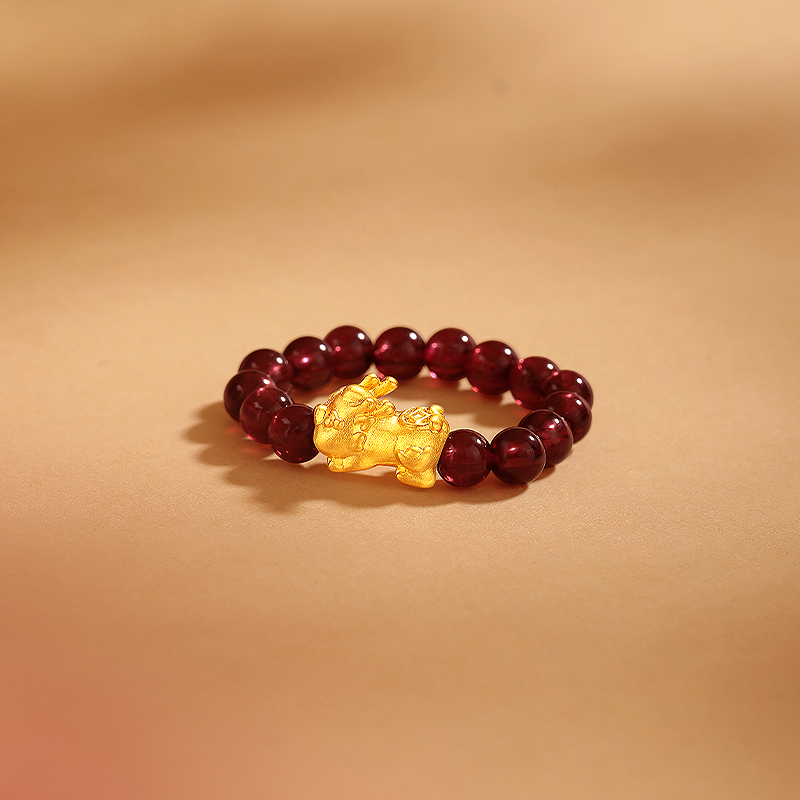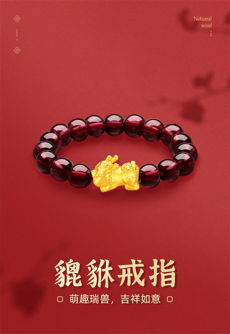 【每证一品】周六福足金貔貅石榴石戒指ZLFA011645 节日礼物生日礼物 送女友送妈妈送朋友 母亲节礼物