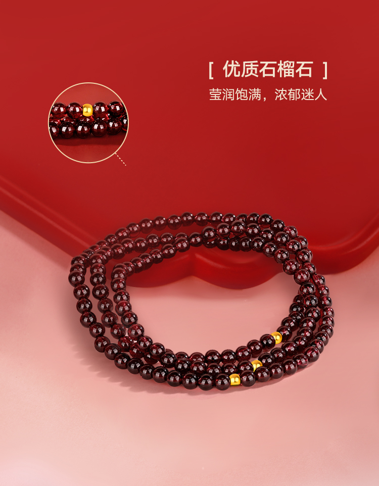 【每证一品】周六福小美满足金石榴石手串ZLFA122700 节日礼物生日礼物 送女友送妈妈送朋友 母亲节礼物