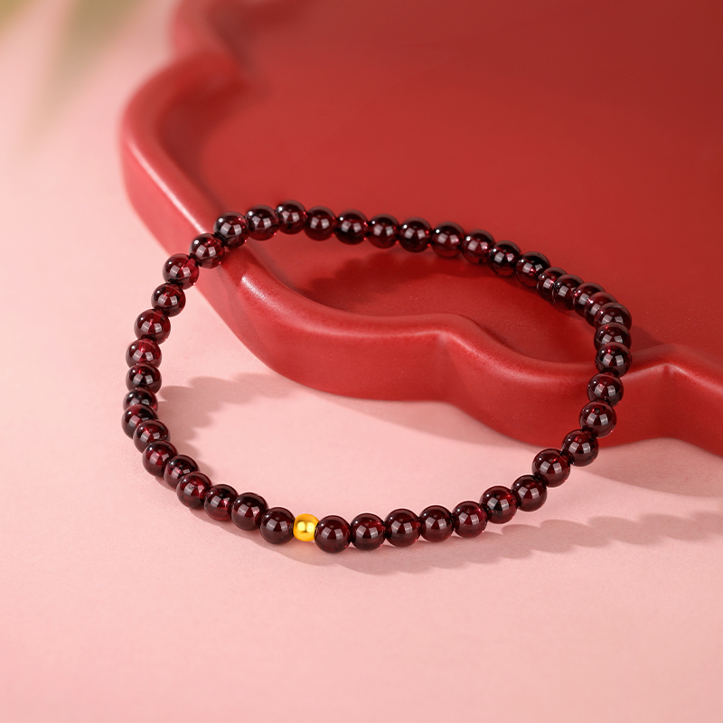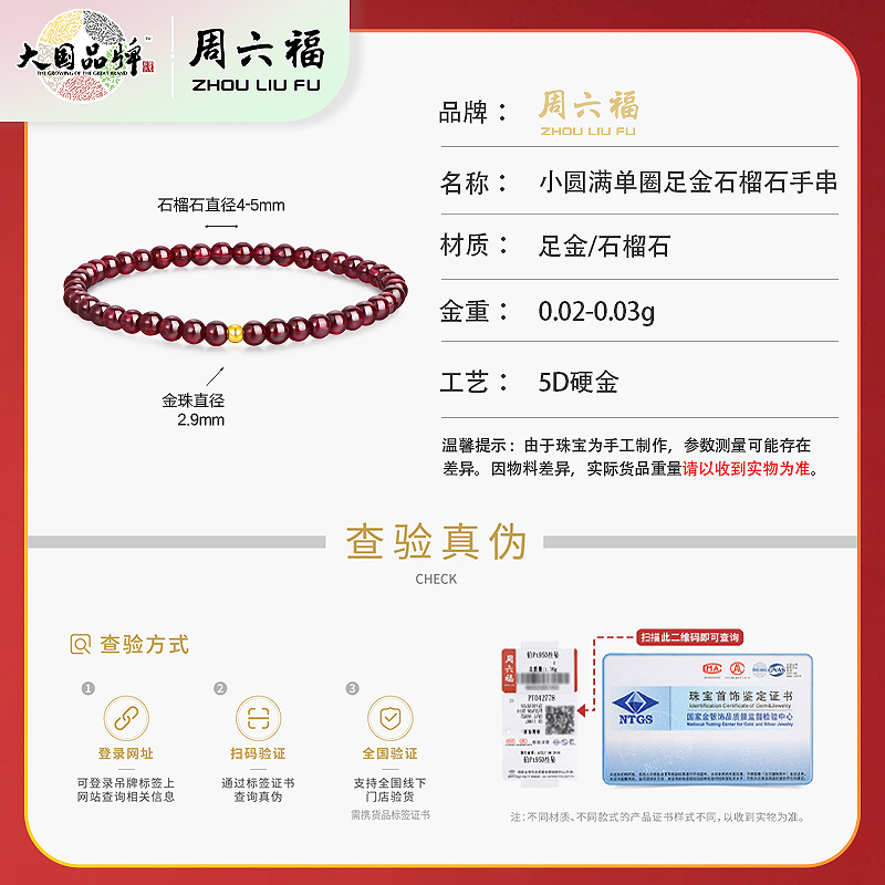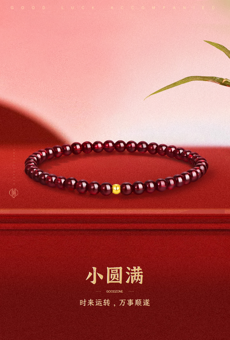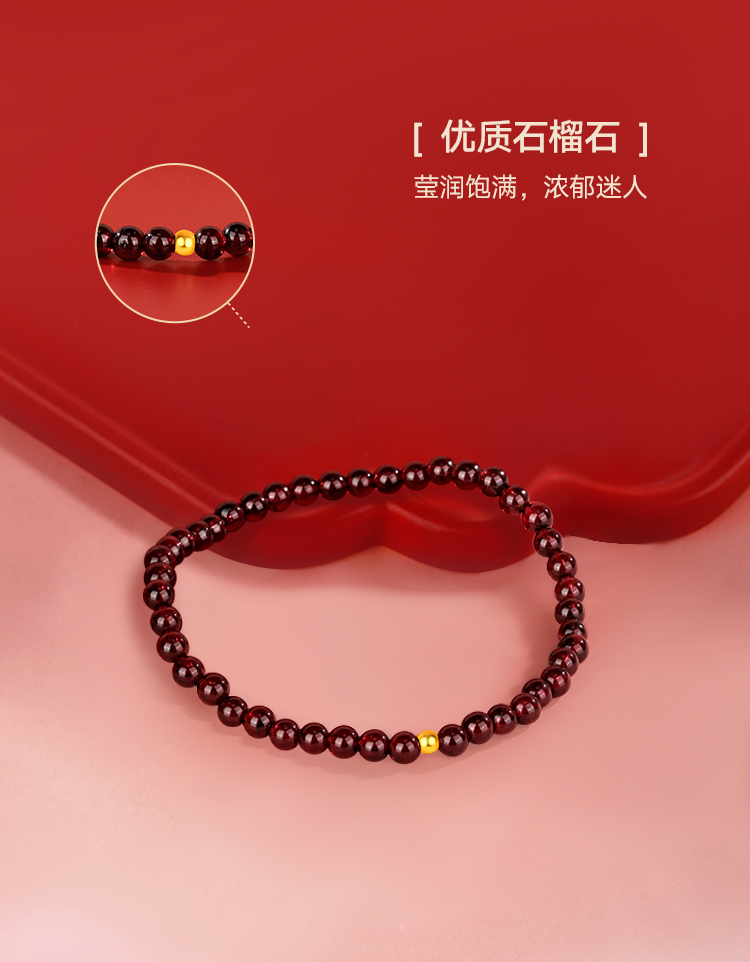 【每证一品】周六福小圆满足金石榴石手串ZLFA122699 节日礼物生日礼物 送女友送妈妈送朋友 母亲节礼物