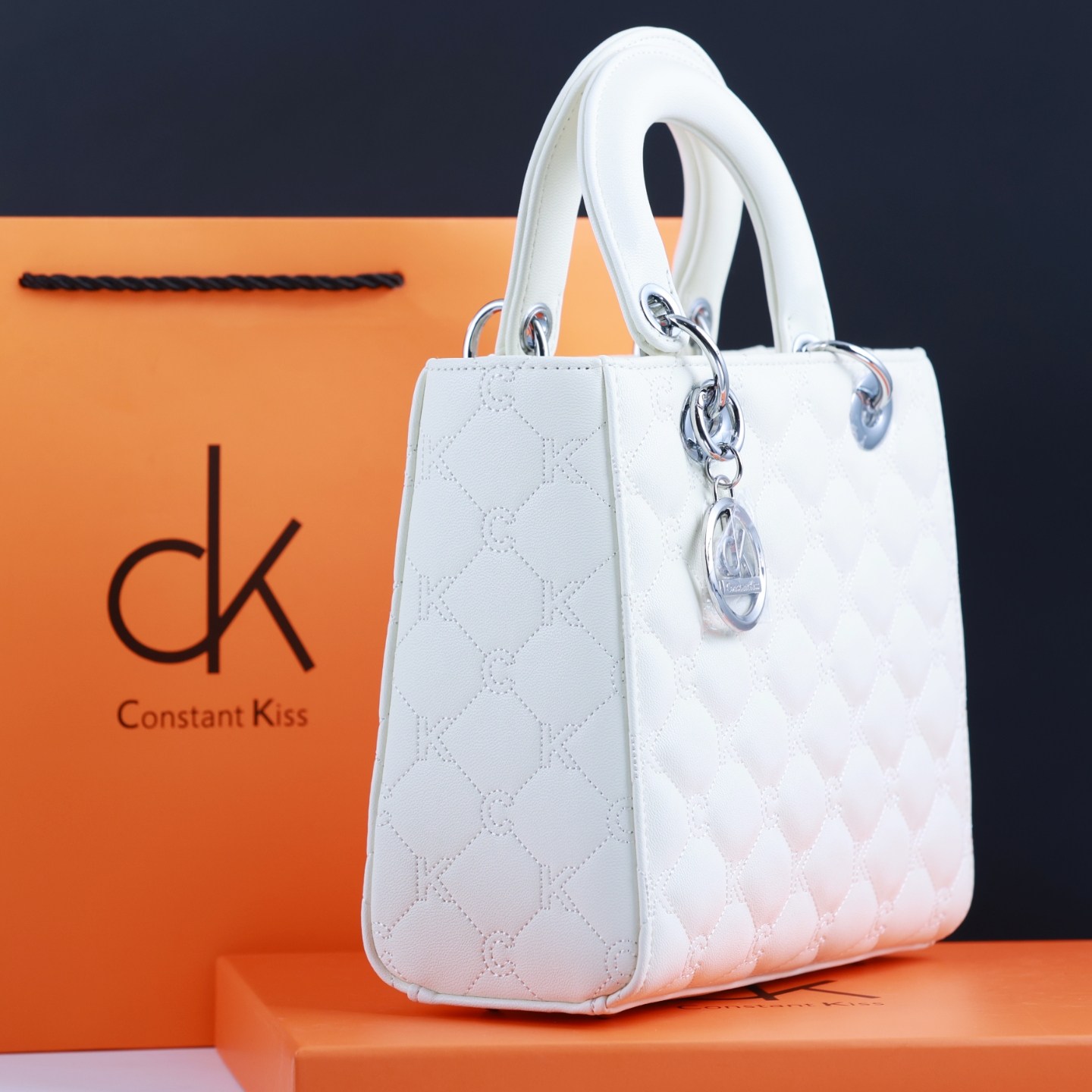 CK铂菱白色新品女士包包高贵典雅上档次手提斜挎