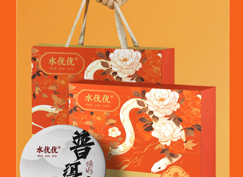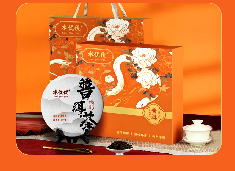水优优普洱茶生茶357g 礼盒+手提袋 茶饼送礼首选佳品精美手提茶叶礼盒装 企业福利