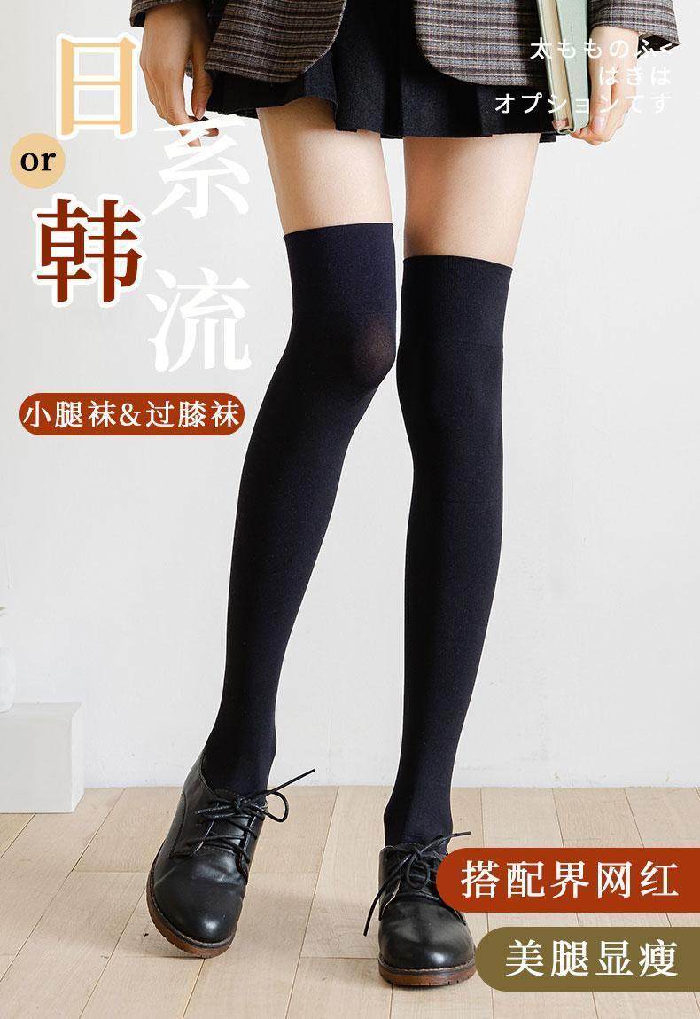 梓延严选 过膝袜防滑长筒袜子过膝盖夏季薄款丝袜jk大腿袜半截黑小腿袜防掉【2双】黑色+白色