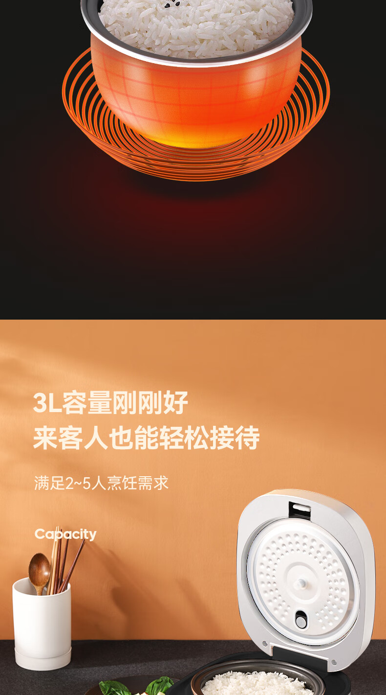 康佳多功能电饭煲 大容量电饭锅不粘内胆 家用煮米 煮粥 煲汤 KDFB-3001E 3L