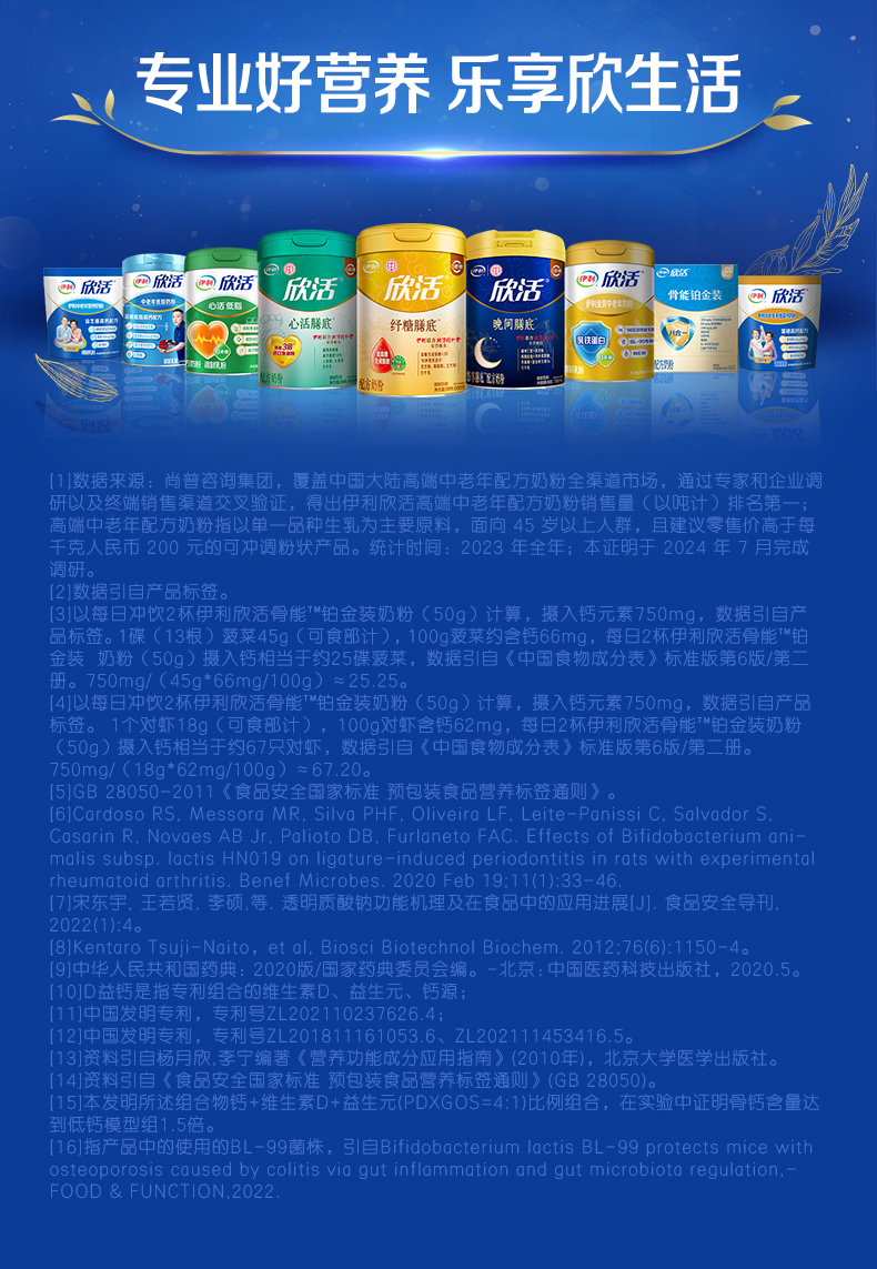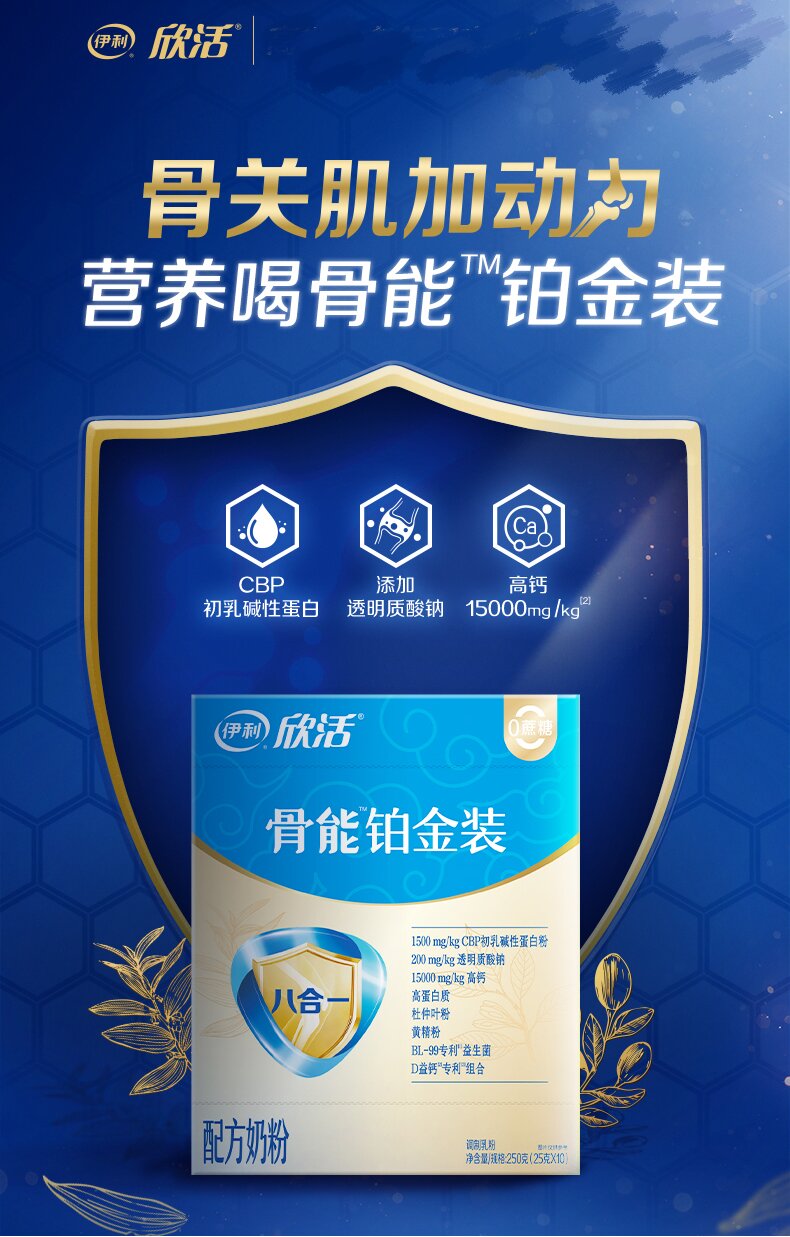 伊利欣活骨能铂金装八合一配方奶粉高钙0蔗糖25g*10