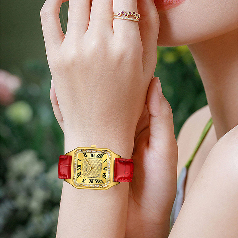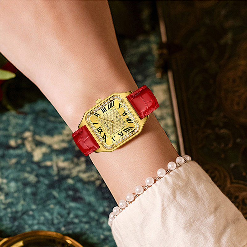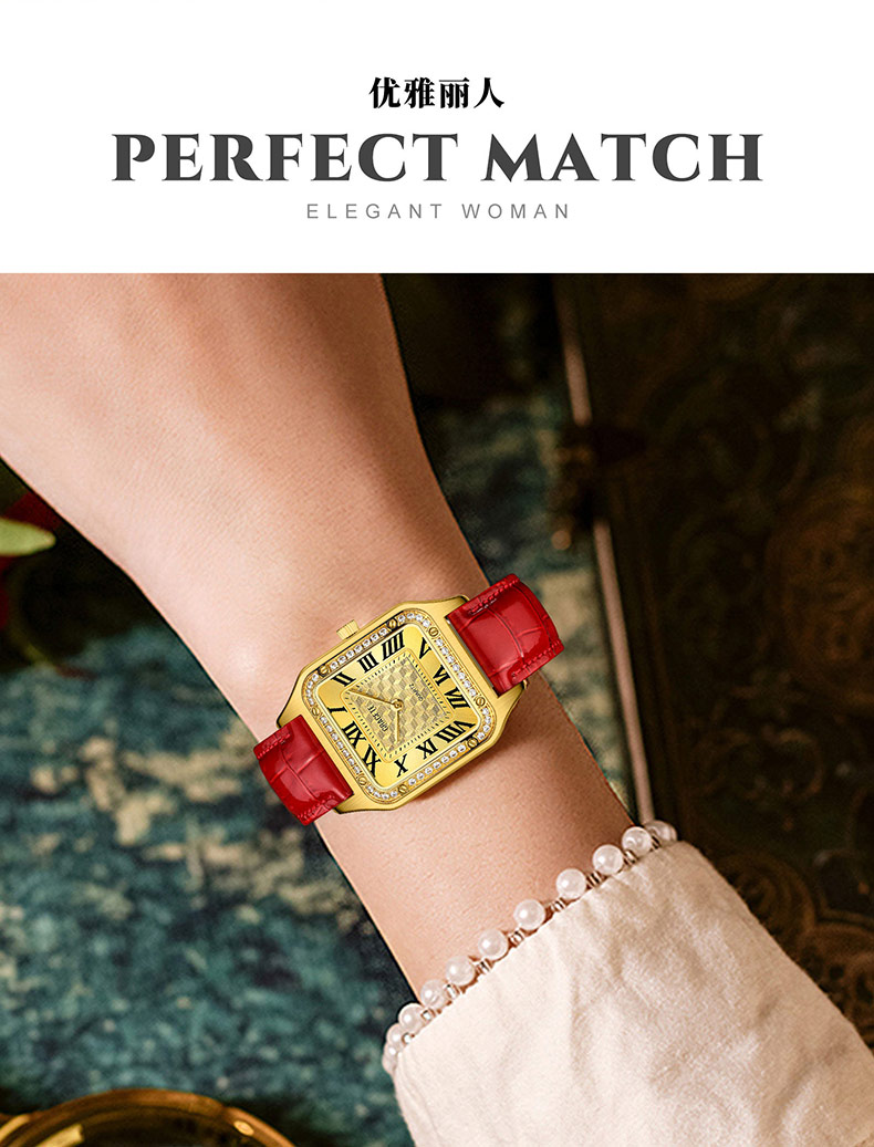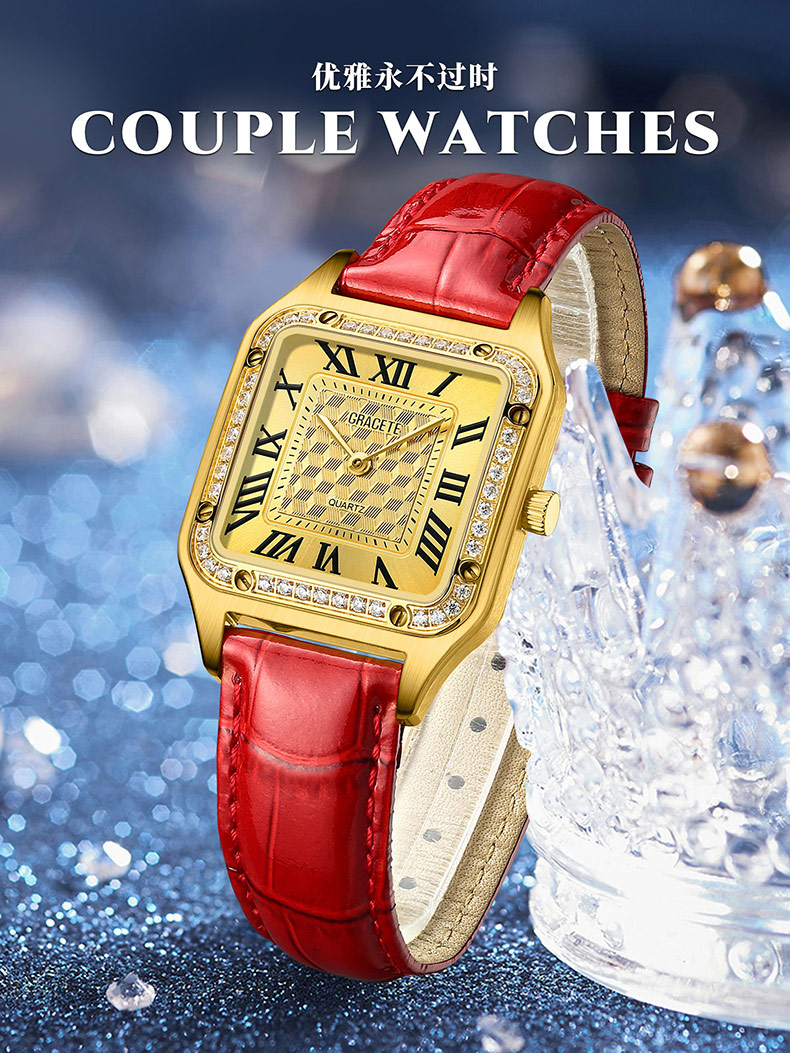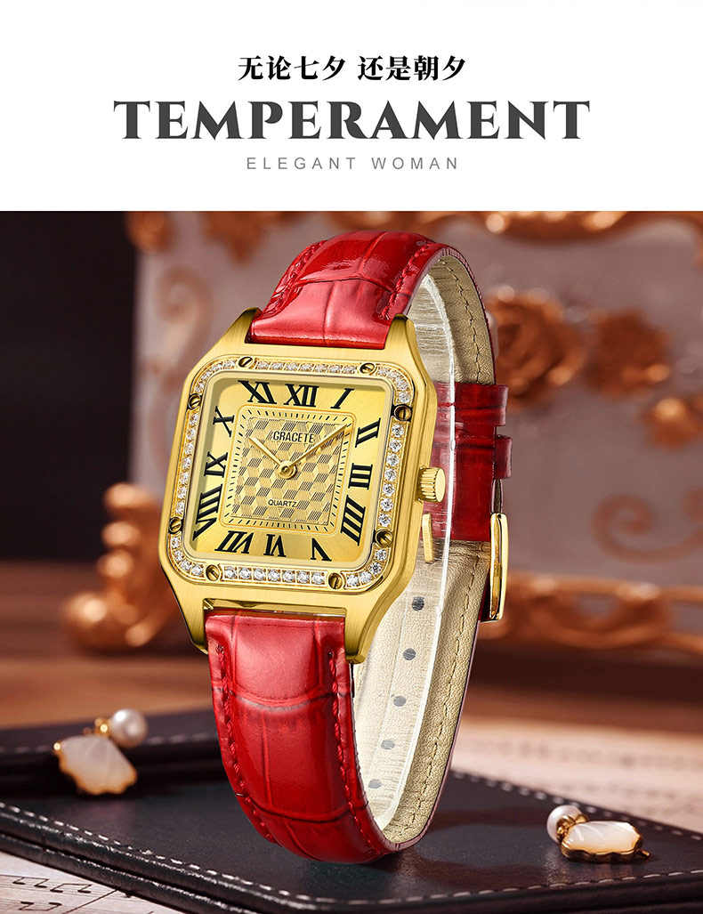 格雷斯特美度士方型时尚腕表轻奢镀金镶砖石英潮流女士手表G8067【每证一品赠送黑色表带】