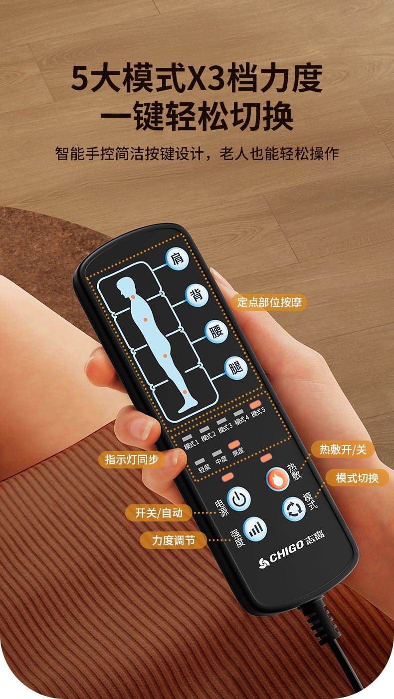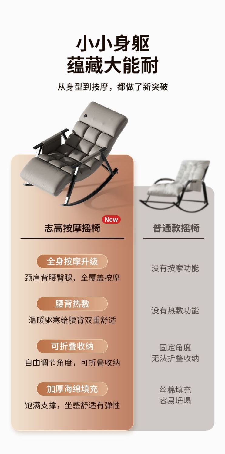 志高按摩椅摇摇椅成人全身小型懒人沙发按摩垫肩颈腰背部靠垫按摩午休客厅卧室阳台办公室躺椅【肩颈揉捏+腰背热敷震动+腿部震动】 送父母爸妈长辈男女朋友实用礼物 ZG-YY669