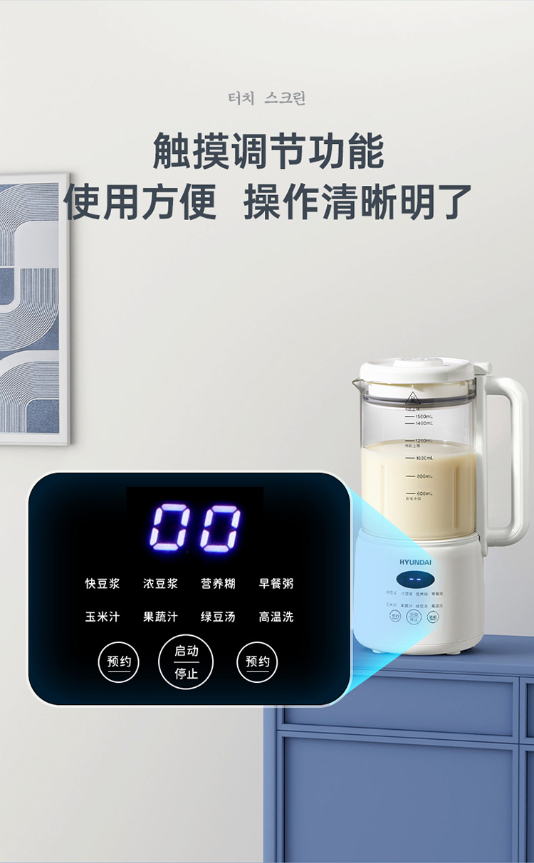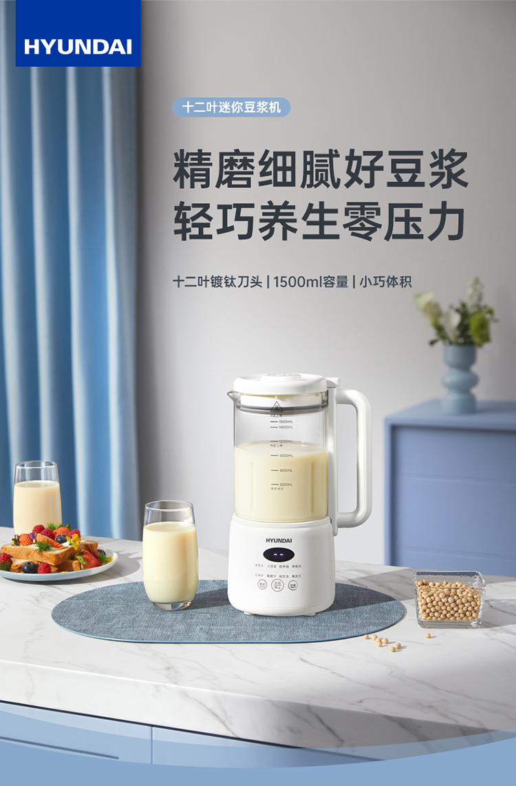 HYUNDAI韩国现代家用多功能搅拌料理机破壁机家用豆浆机多功能自动清洗加热料理机榨汁机果汁机婴儿辅食机搅拌机高温清洗12叶钢刀【破壁免滤+高温清洗】QC-DJ72A