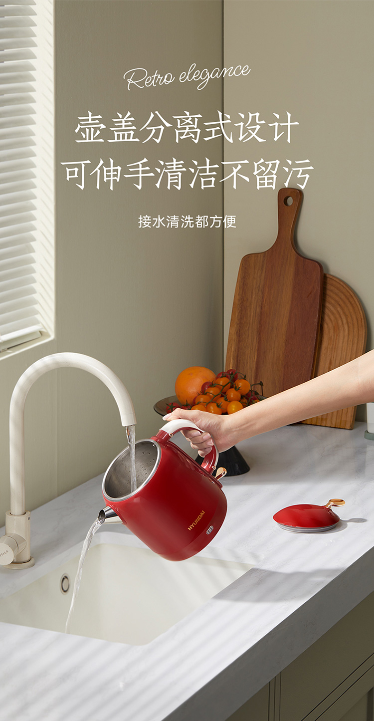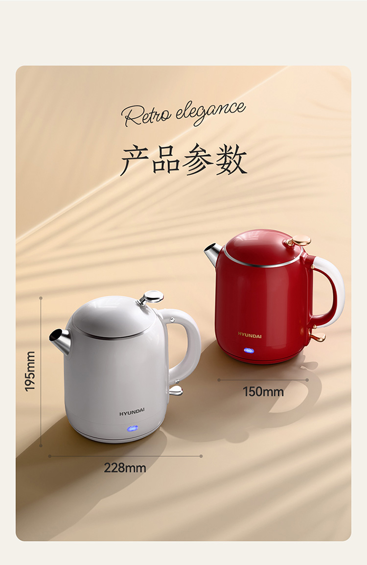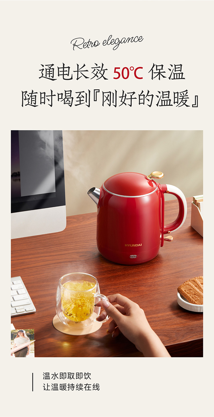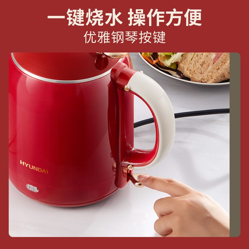 HYUNDAI韩国现代小鸟壶电热烧水壶双层防烫保温304不锈钢保温功能大容量恒温电热水壶QC-SH0376