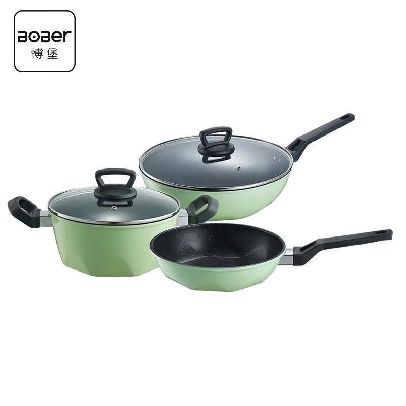 博堡臻耀精铁不粘锅具三件套BDY-TZ673B